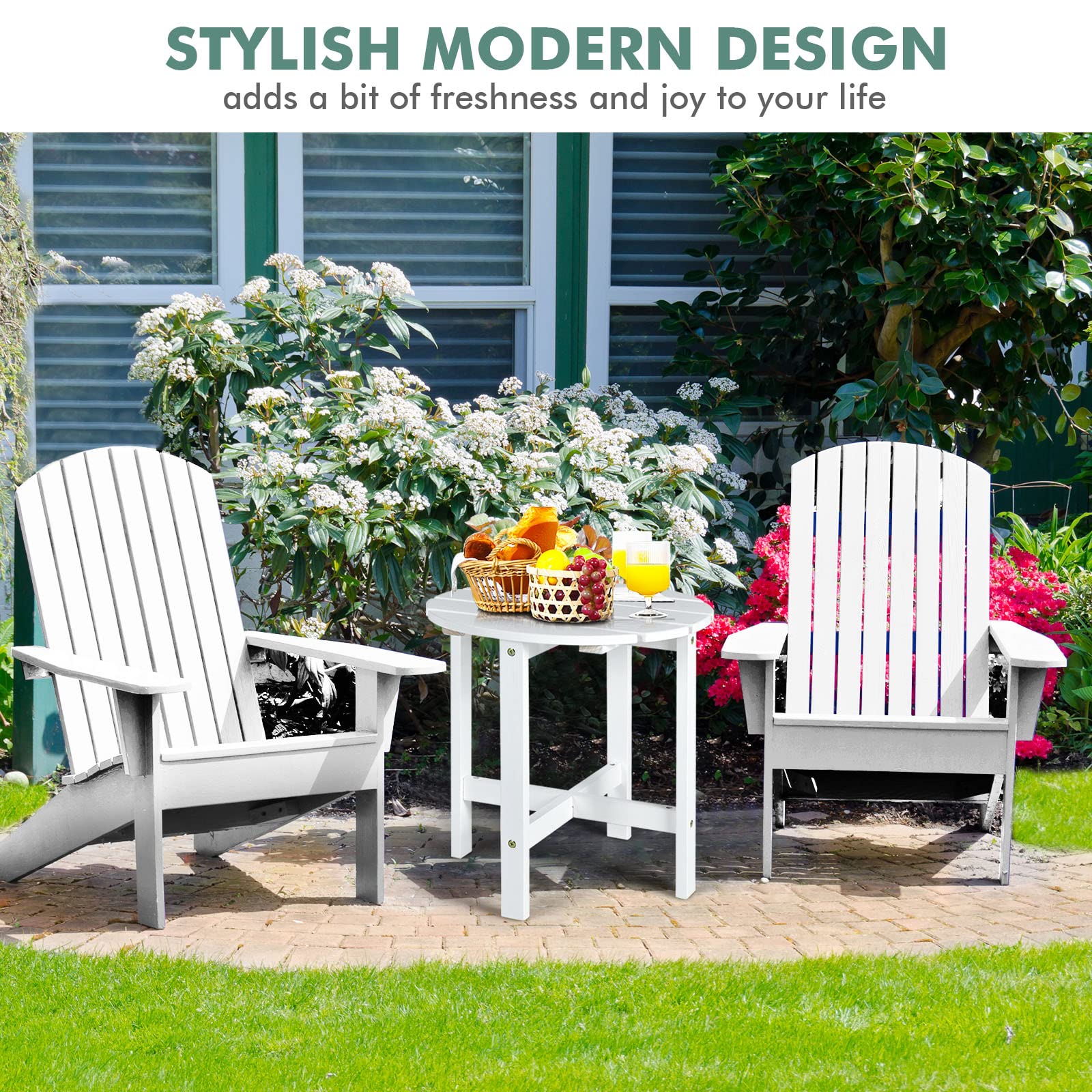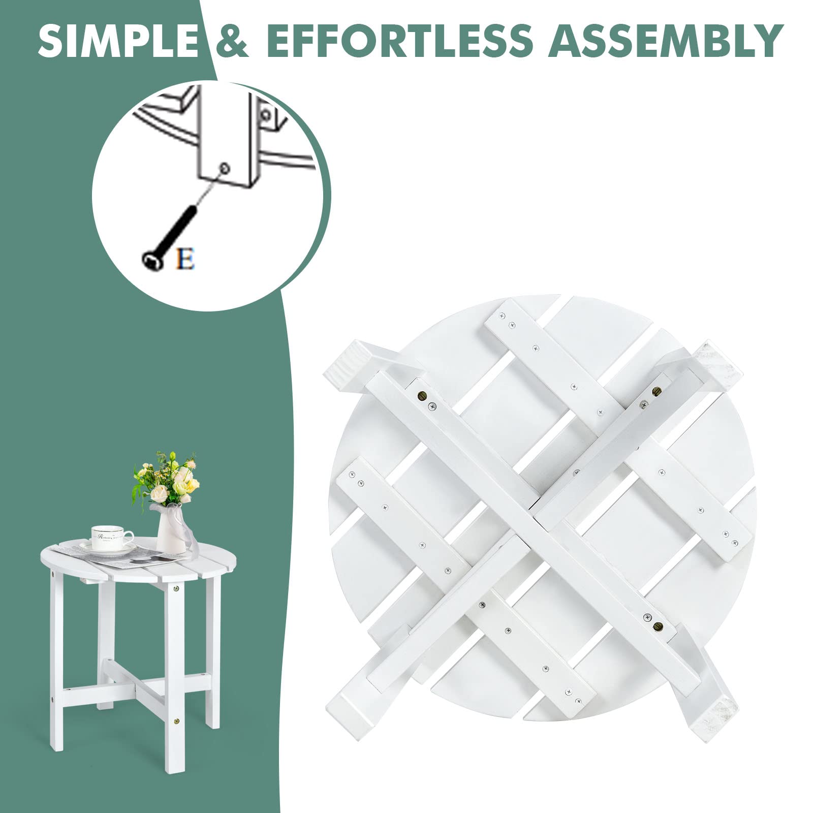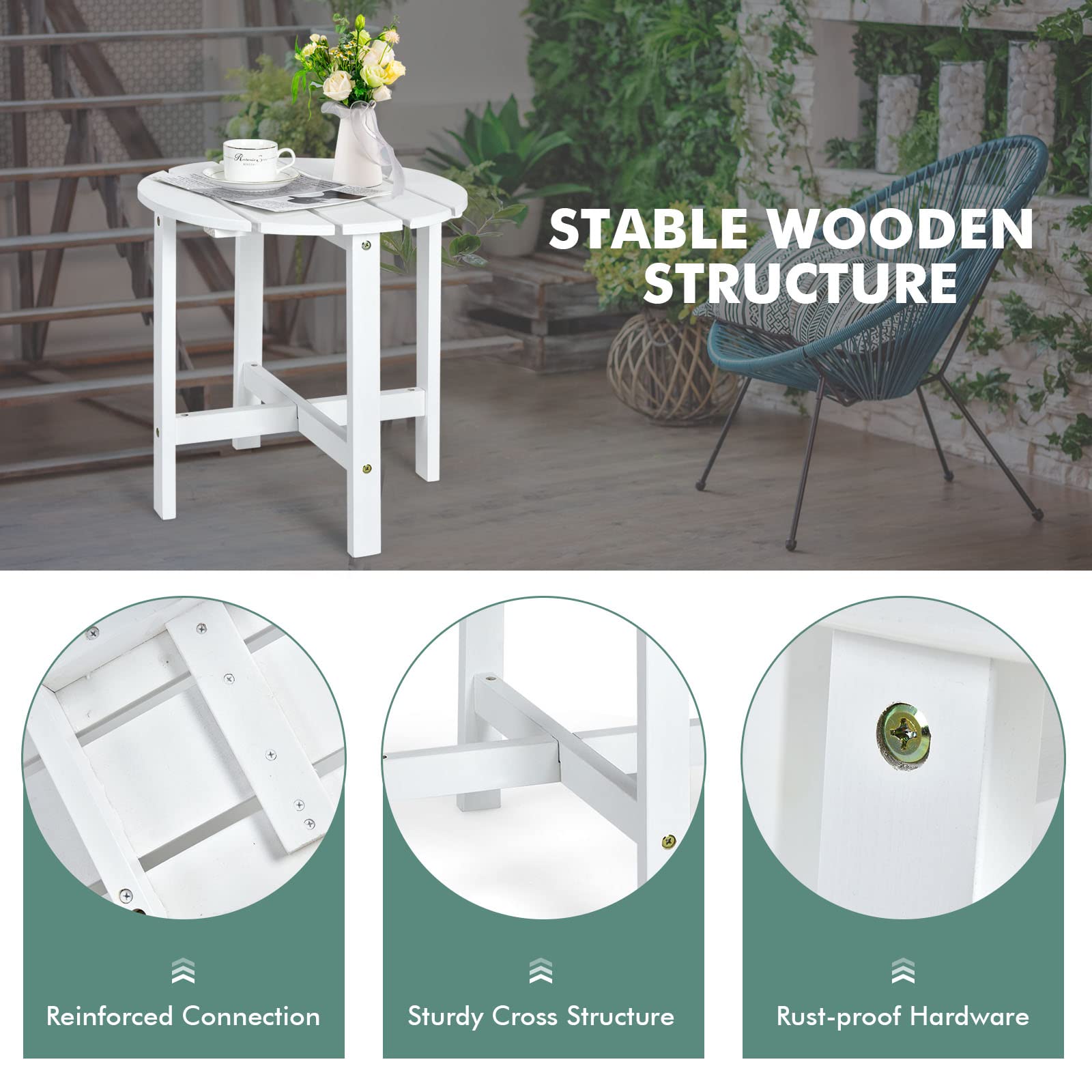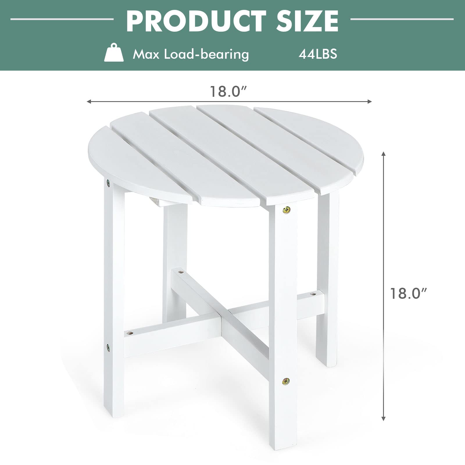 Are you looking for an outdoor side table to spend your leisure time on? Our round patio side table is a perfect addition to your outdoor chairs. Made of solid fir wood, the round side table is sturdy enough to be used for a long time. And the legs with cruciform structure also improve overall stability. This versatile end table is perfect for your outdoor or indoor space like a garden, backyard, patio, poolside, dining room, or living room. With a smooth spray-painted surface, the side table is scratch-resistant and easy to clean. Comes with clear instructions and required accessories, and the outdoor side table is easy to assemble.