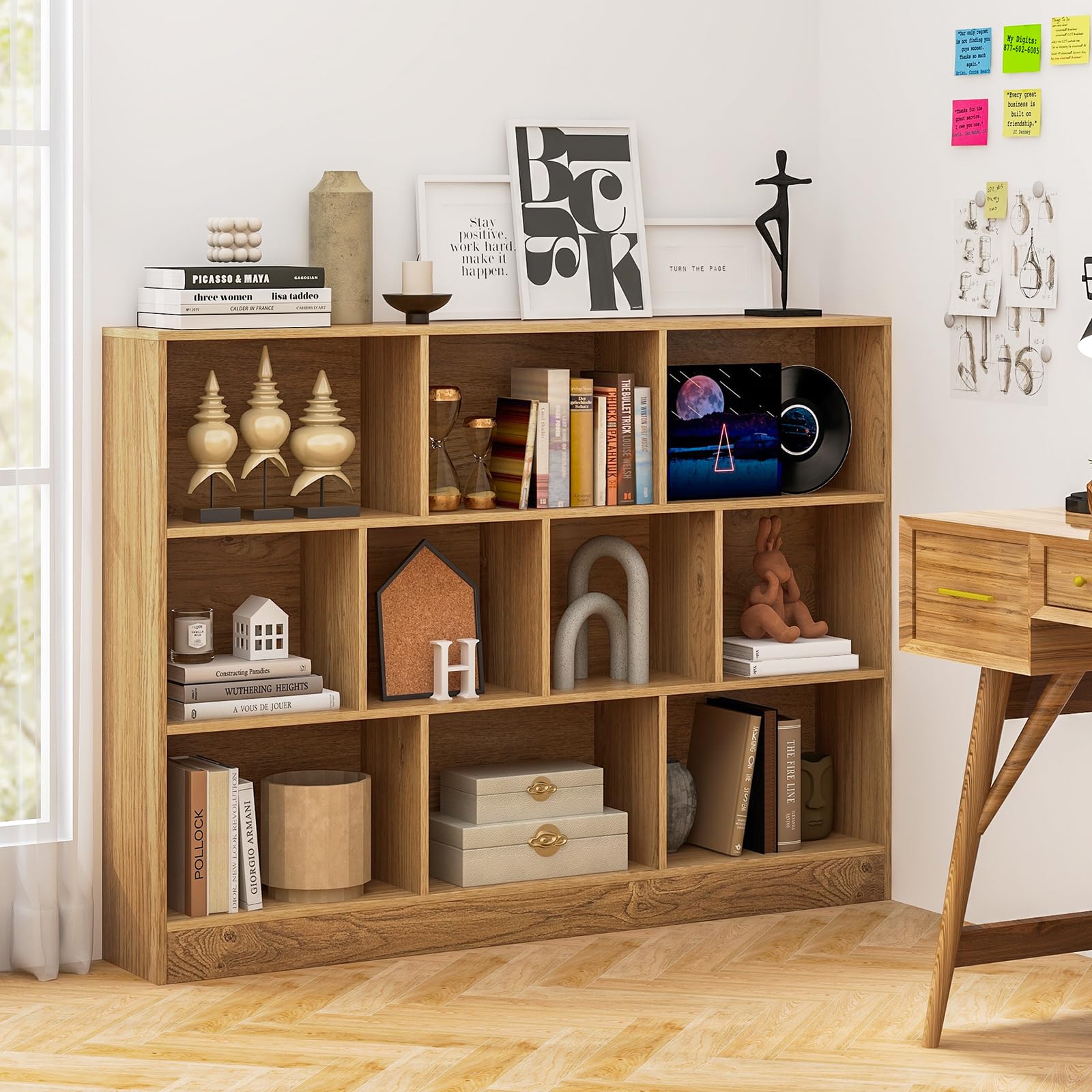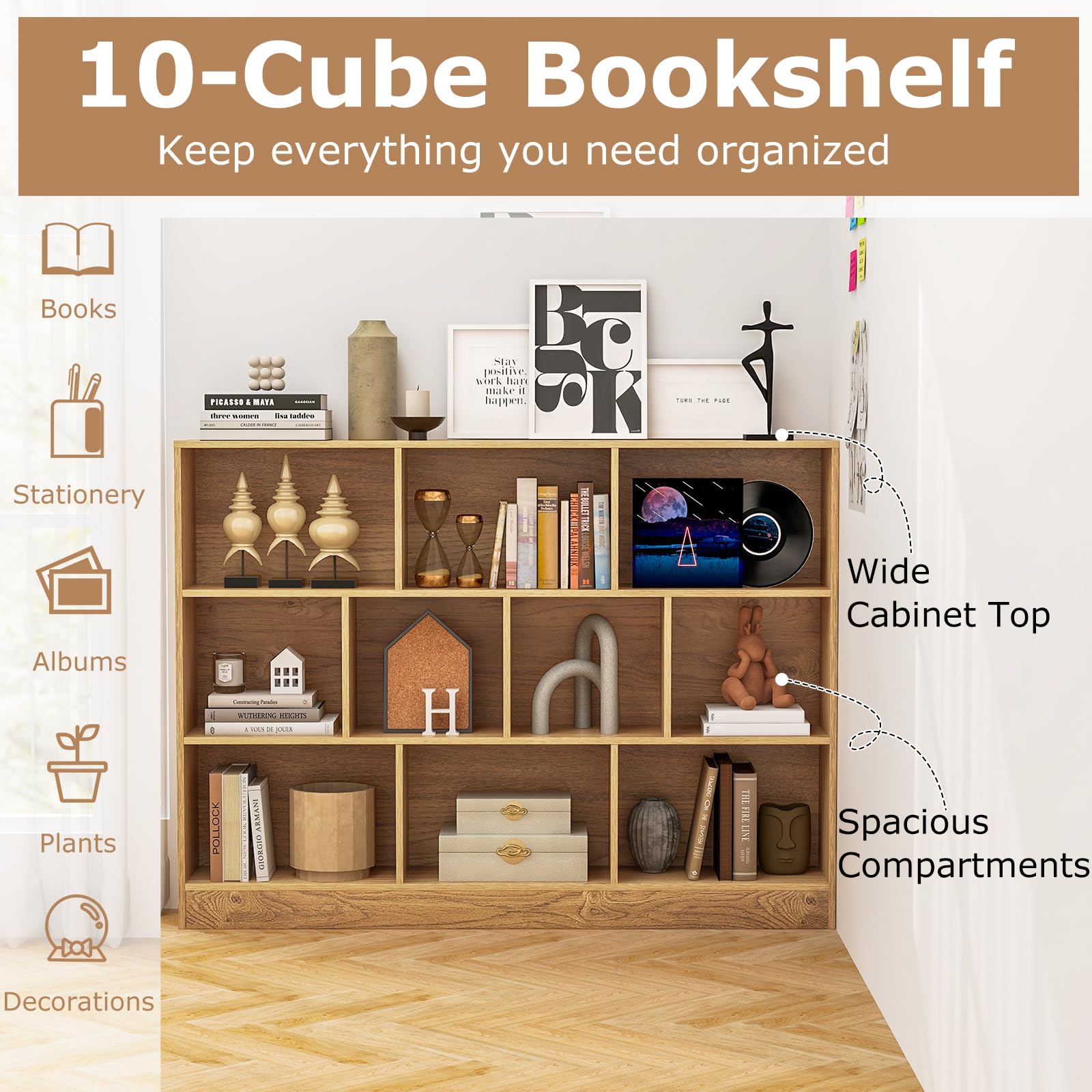 - Ample Storage Space: Organize and showcase your favorite reads and collectibles with the bookshelf, featuring 10 wide cubes. This modern storage solution is perfect not only for books, but also for stationery, albums, plants, and decorations.