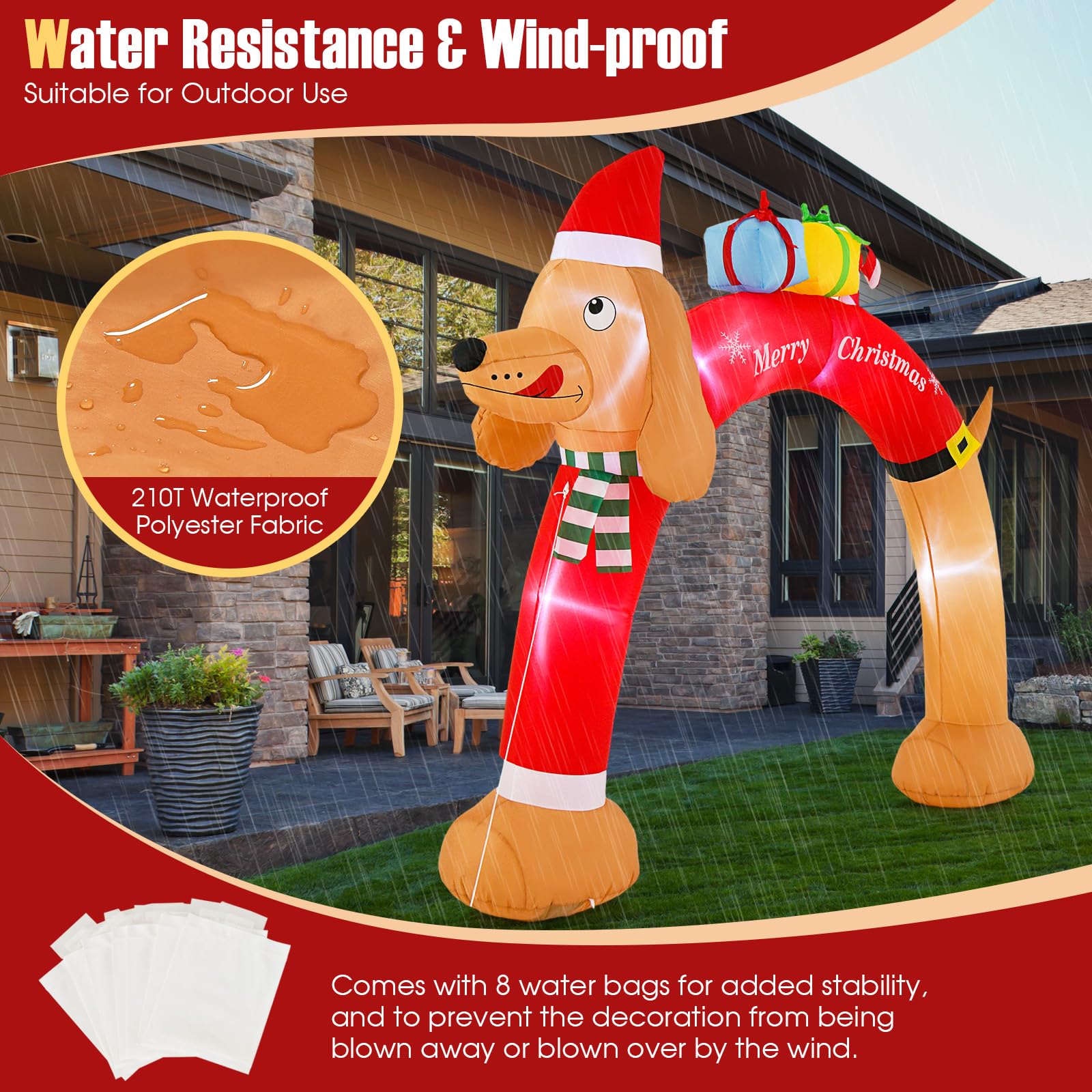 - Adorable Appearance with LED: Our inflatable Christmas arch consists of an adorable dachshund and Christmas presents. The built-in LED lights will make the inflatable decoration look amazing at night, making your yard the center of attention.