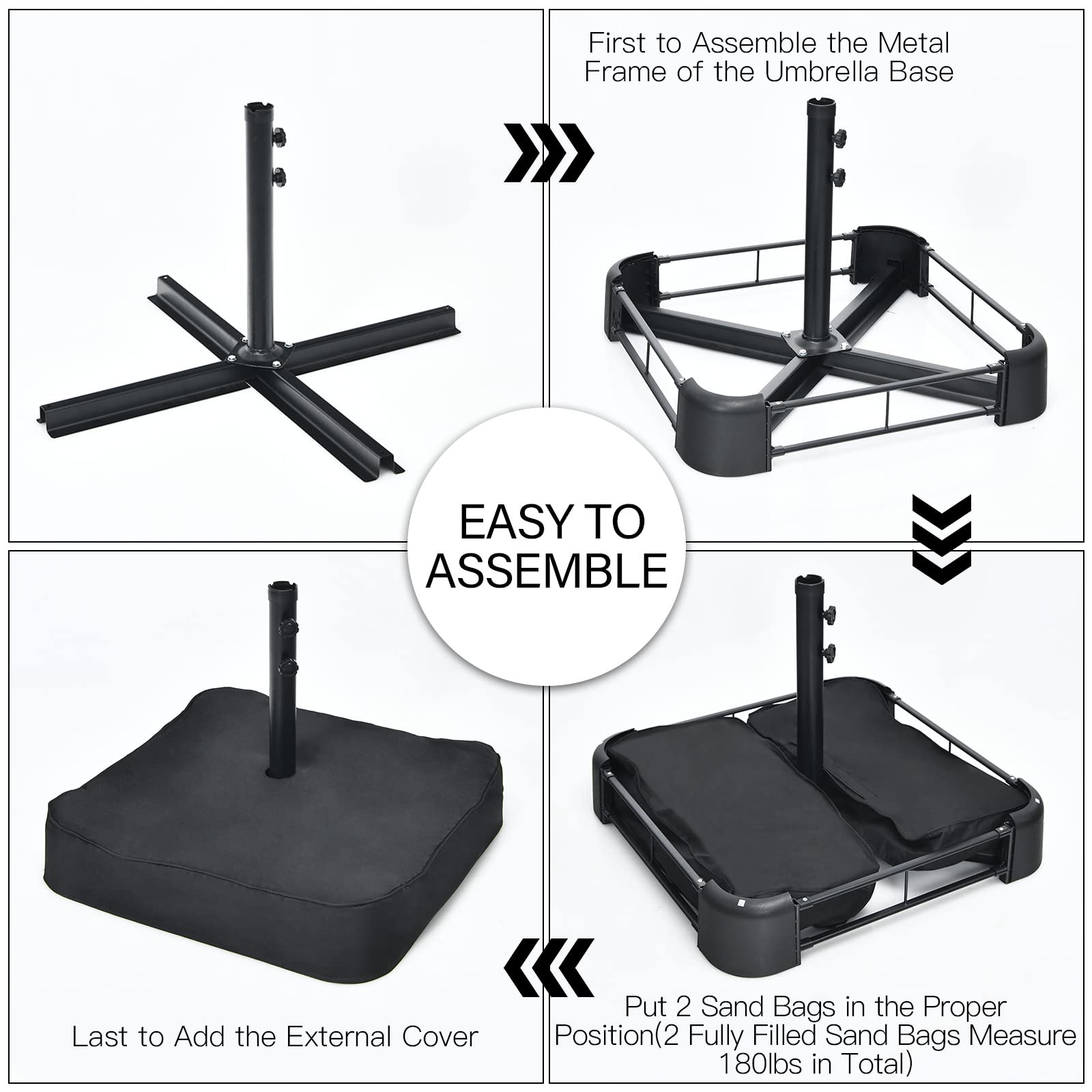 Weighted base (180 lbs when fully filled) for stability of the umbrella