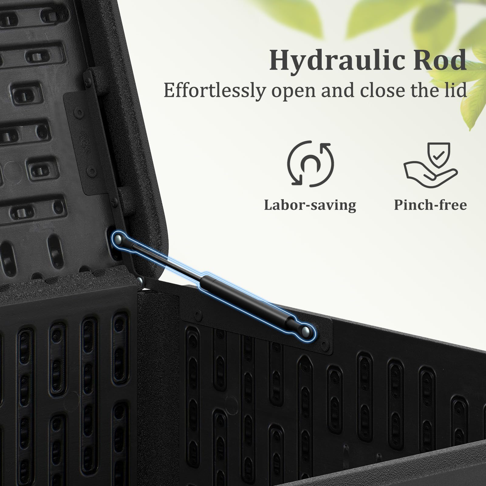 Pinch-free gas strut ensures smooth opening and closing of the lid