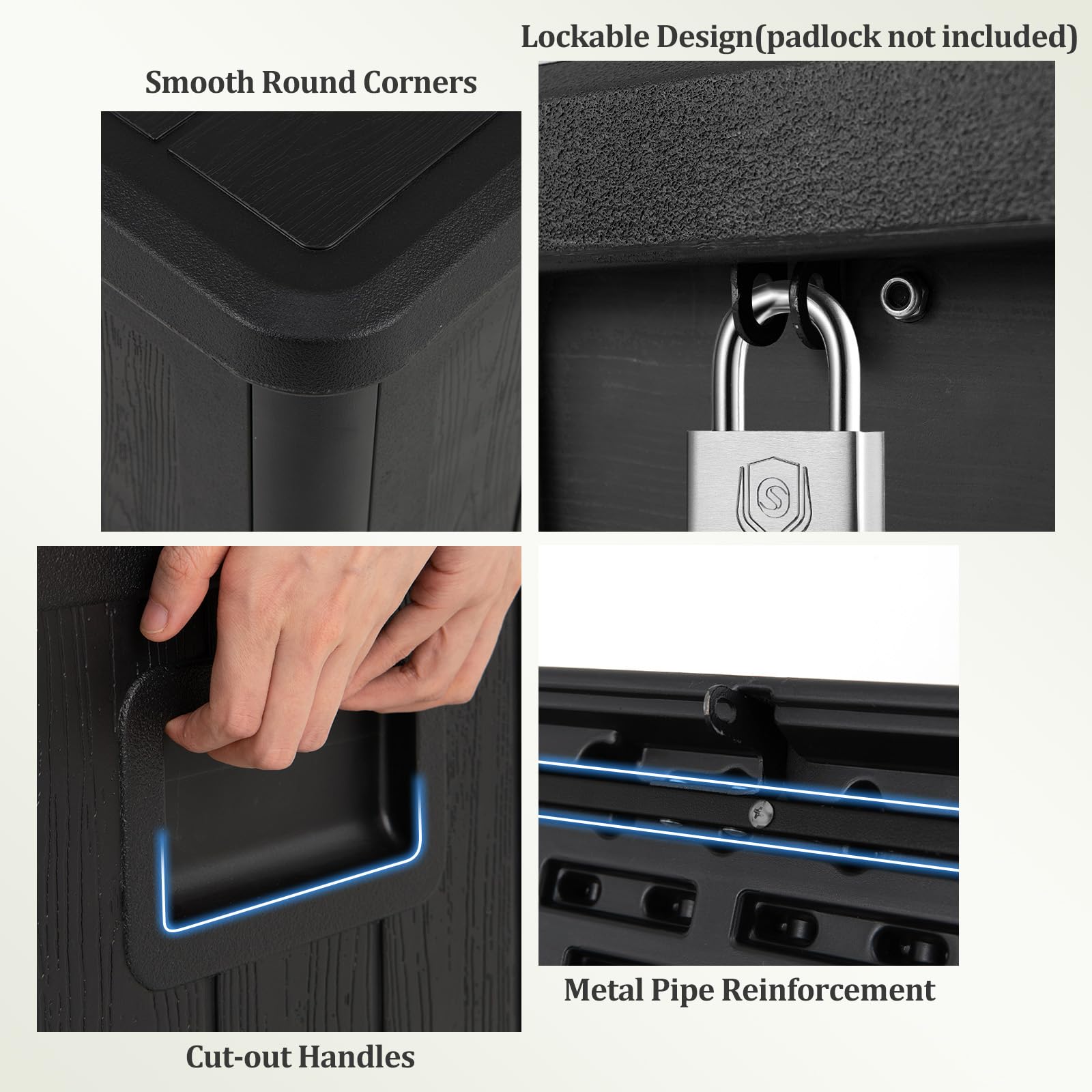 Openable lid with lockable design(padlock not included) keeps your items safe