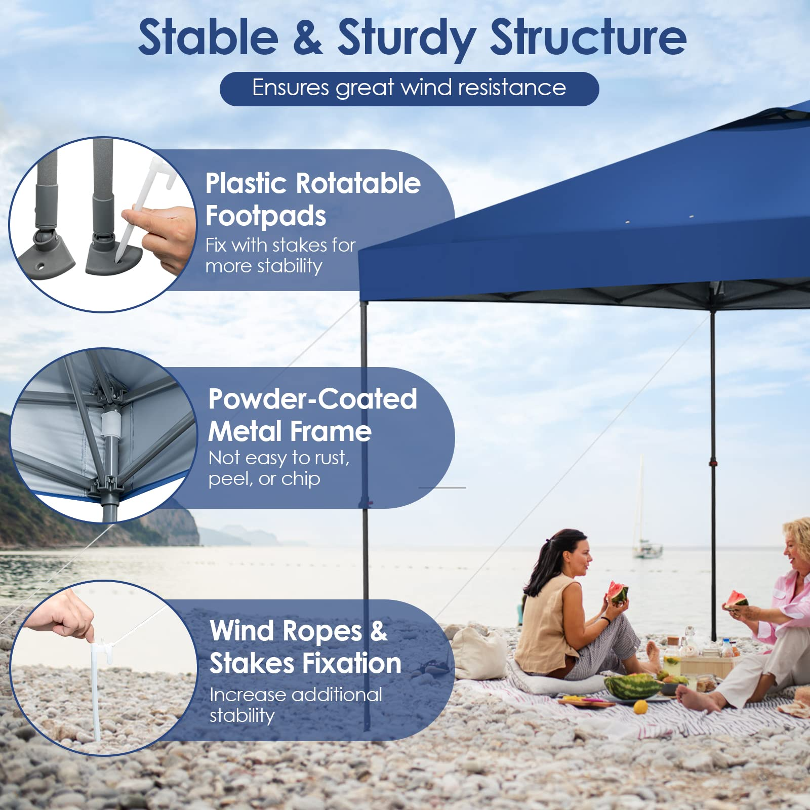 - Easy Setup & Takedown: The pop-up canopy is equipped with an easy center push mechanism, which enables 1 person to set it up or take it down in seconds with no tools necessary. The folding canopy is suitable for various occasions, such as the backyard, beach, campsite, park, party, etc.