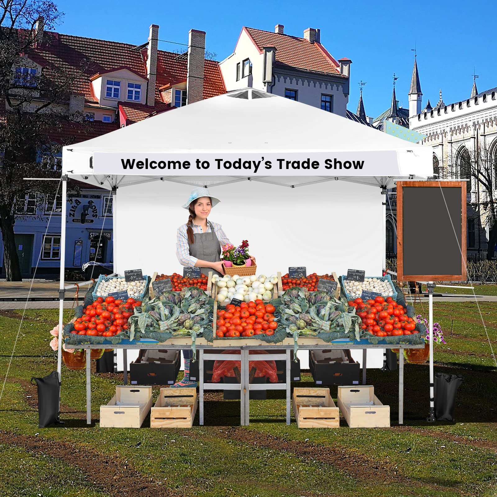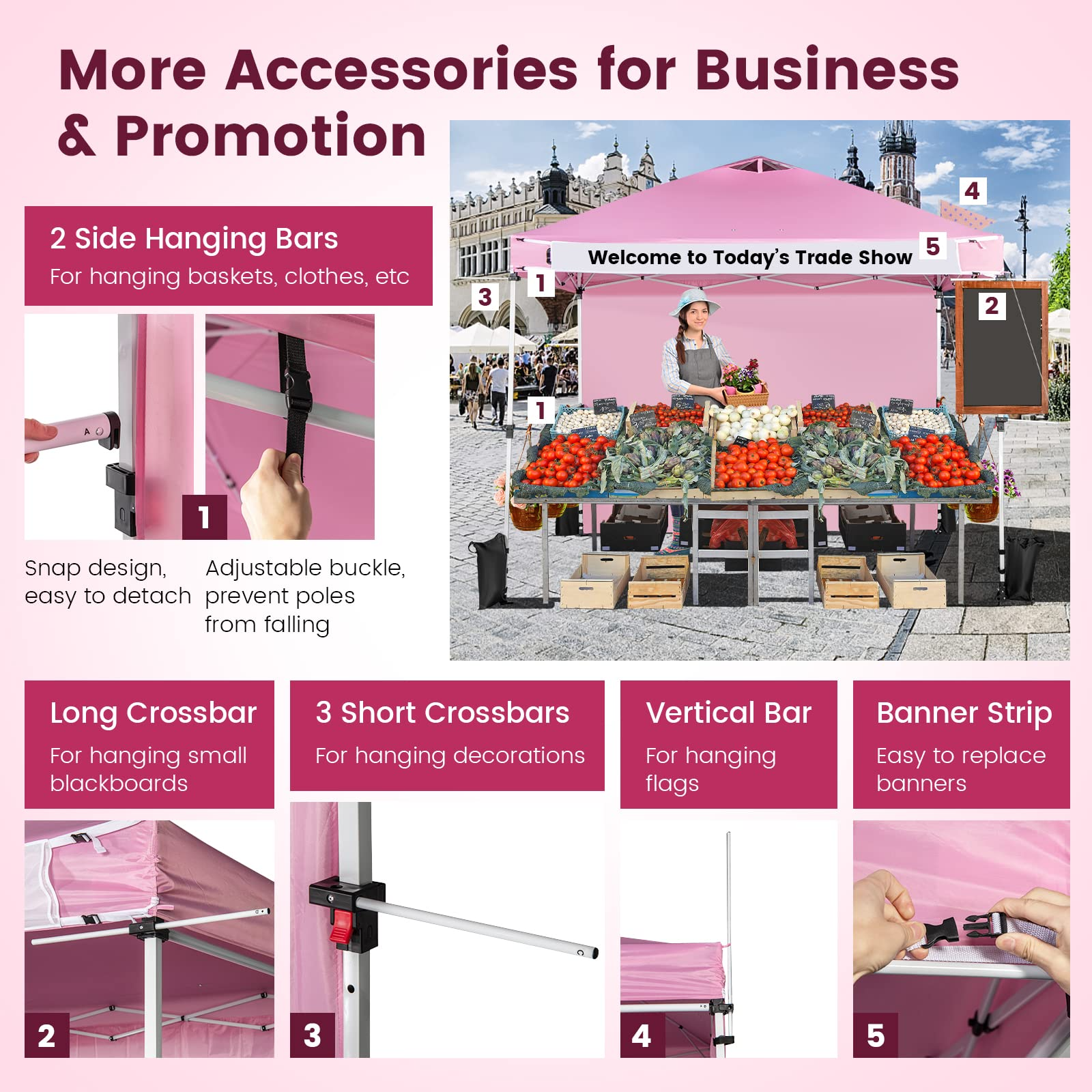 • More Accessories for Business & Promotion: Unlike normal market canopies, our commercial canopy tent comes with multiple accessories for better promoting your goods. There are 2 side hanging bars for hanging baskets, clothes, etc, a long crossbar for hanging small blackboards, 3 short crossbars for hanging decorations, a vertical bar for hanging flags, and a banner strip for placing different banners.