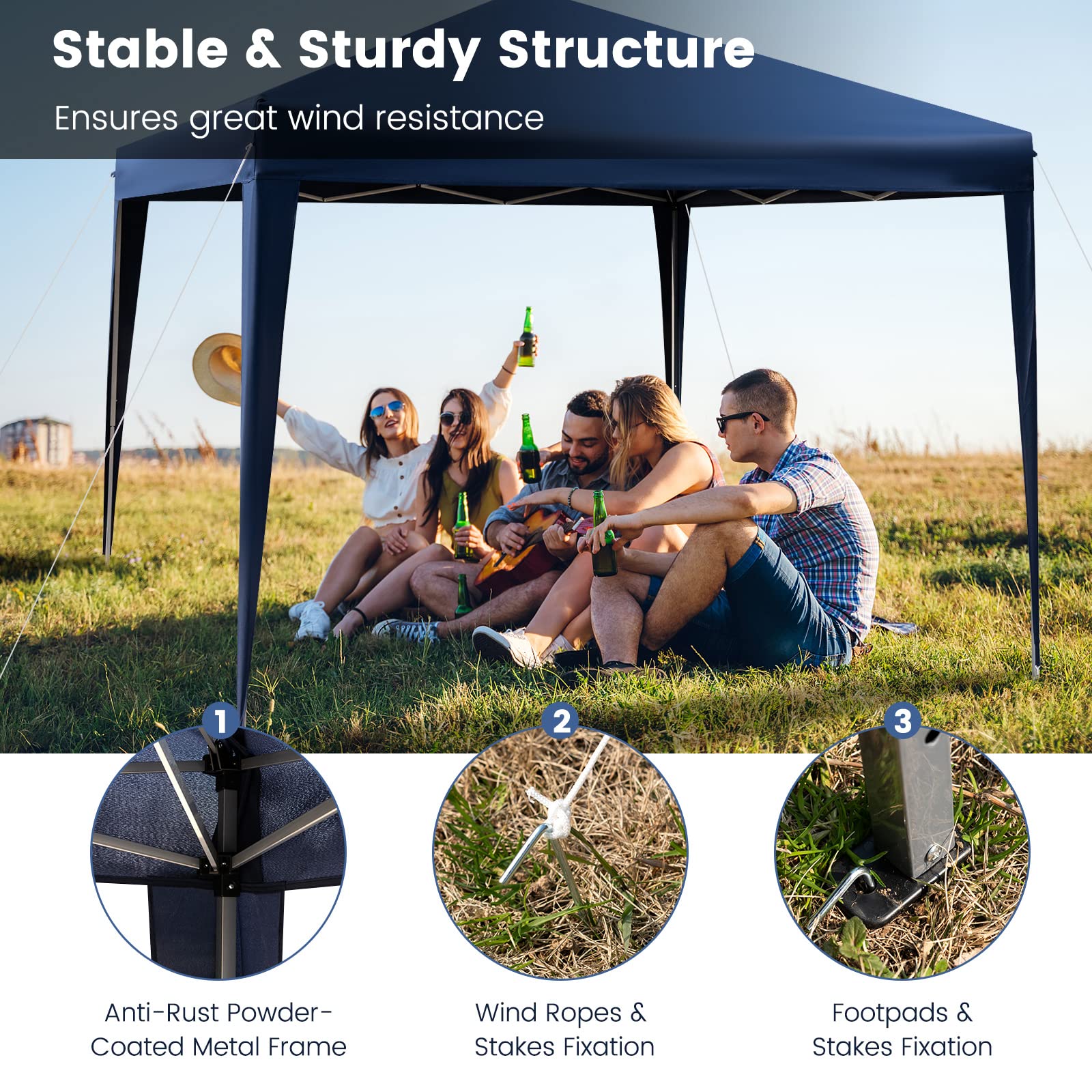 - Stable & Sturdy Structure: The outdoor canopy tent adopts a heavy-duty powder-coated metal frame, which is not easy to rust, peel, or chip, ensuring good sturdiness. Besides, it is equipped with 4 wind ropes, 8 stakes for firmly fixing the canopy tent on the ground, ensuring great wind resistance.