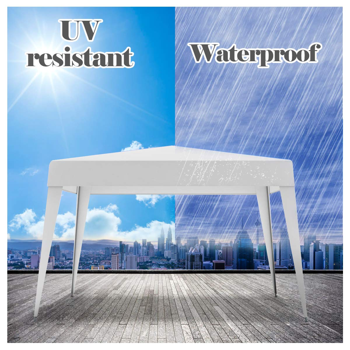 - Sturdy Tent: Integrated solid steel with polyethylene fabric, this tent with less than 15 lbs weight can well stand up to the test of time. It features weather resistance allowing you a longtime utility with such a light yet sturdy mobile canopy.