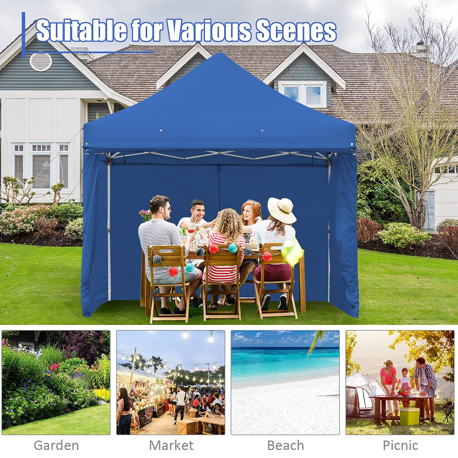 Our functional business tent provides a comfortable shading area with spacious space. Powder coated framework makes this canopy more strong and the oxford fabric is quite durable for long-term use. 5 adjustable positions allow you to flexibly set the height of the canopy according to your needs or preference. With sandbags, ropes, and stakes, the tent is more stable and easy to resist the wind. And it also comes with a wheeled bag for easy transportation. Our high-quality tent is perfect for many outdoor needs, such as concession stands, craft fairs, flea markets, etc. You can also use the tent for a backyard barbecue with your friends, or the patio tent is an ideal choice for your birthday party as well.