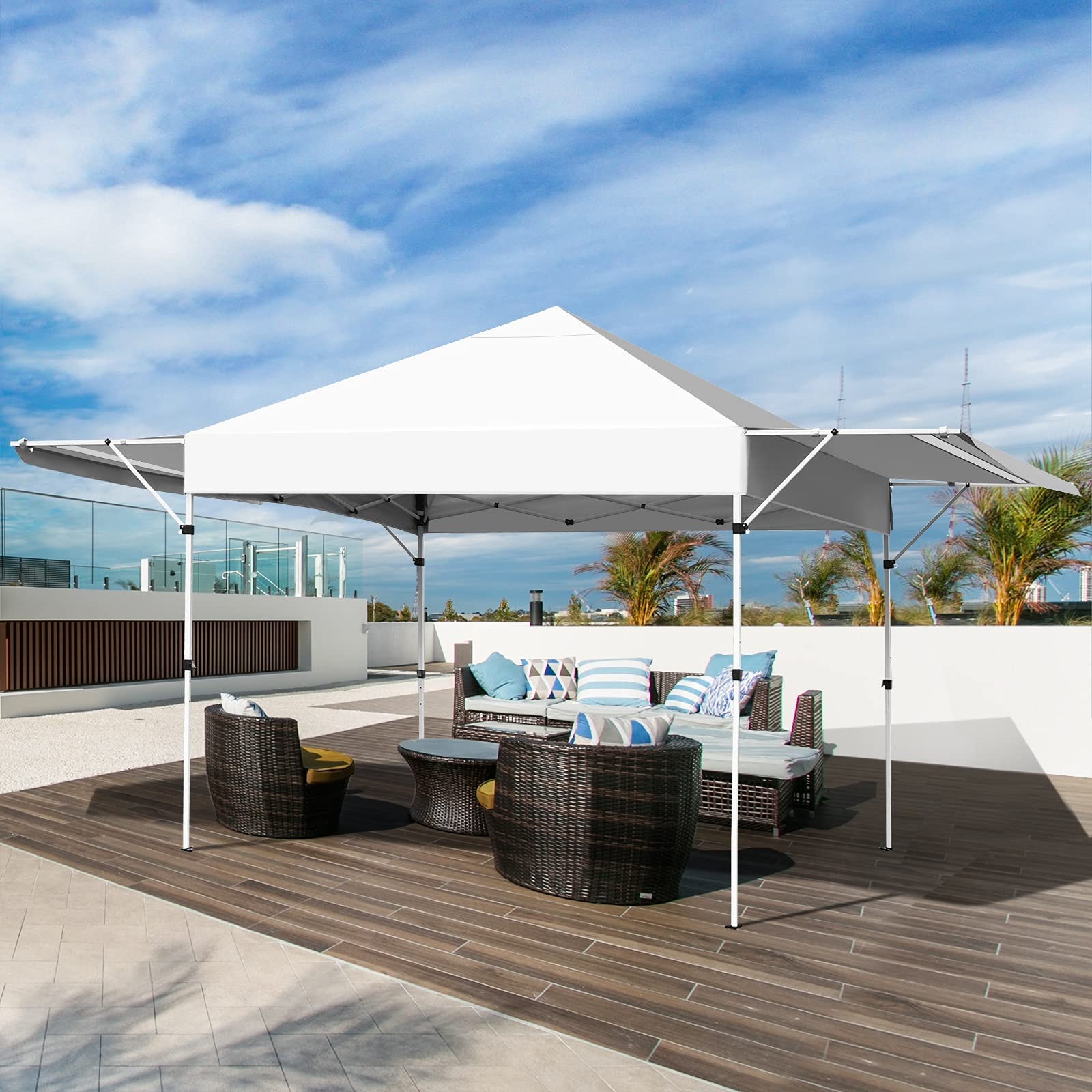 3-Inclination side awnings extend shade area to 170 square feet
