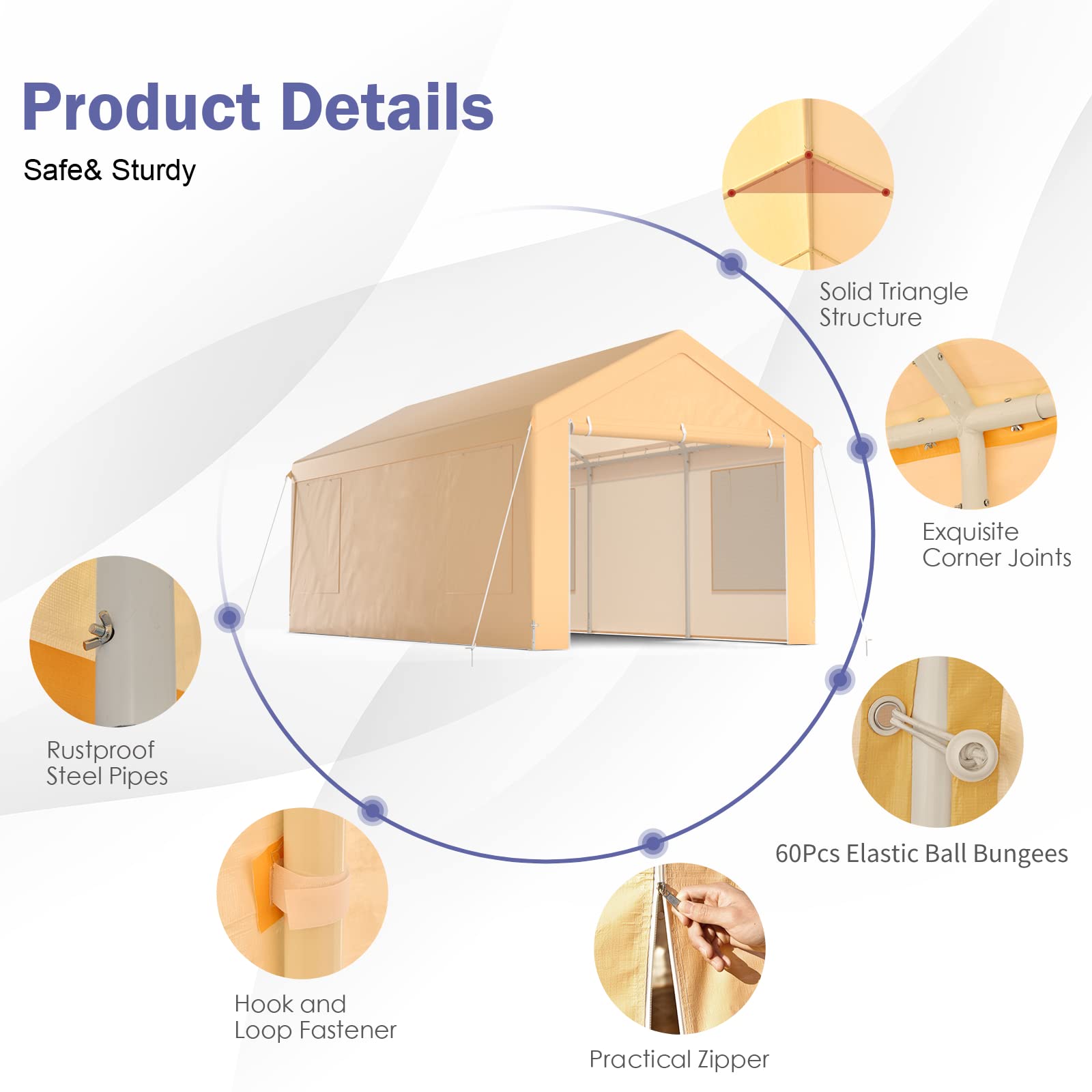 Tangkula 10x20 Ft Heavy Duty Carport, Portable Garage with Removable Sidewalls