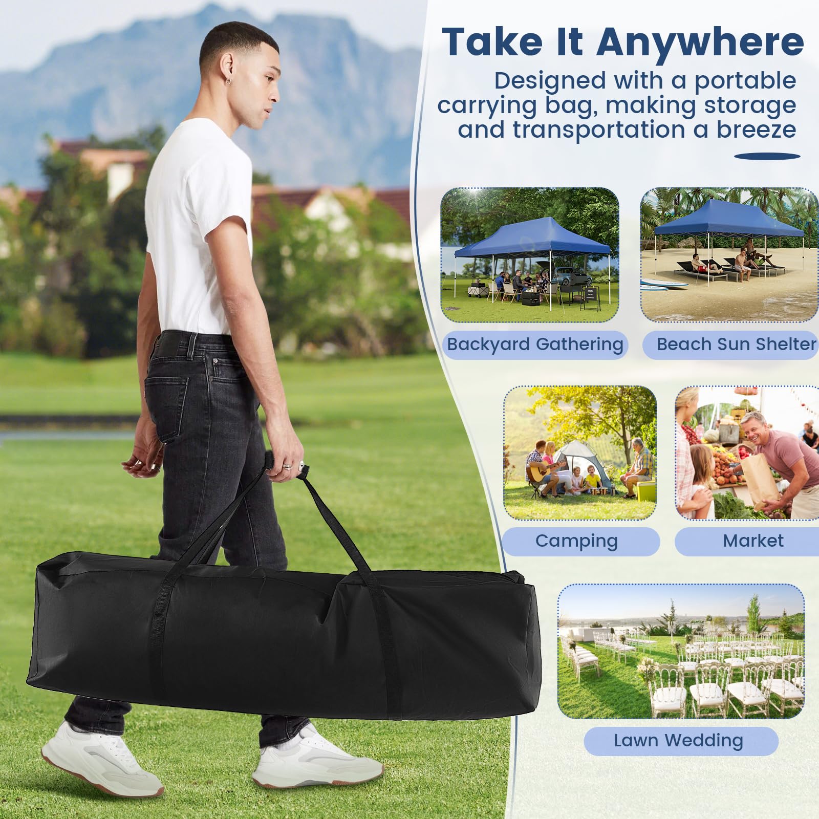 - Portable for Versatile Use: With included carrying bag, the folding canopy can be conveniently stored and transported to anywhere you want. Hence, whether you want to hold a outdoor party, wedding ceremony, gathering or use it on market, the portable pop up tent is a perfect choice.