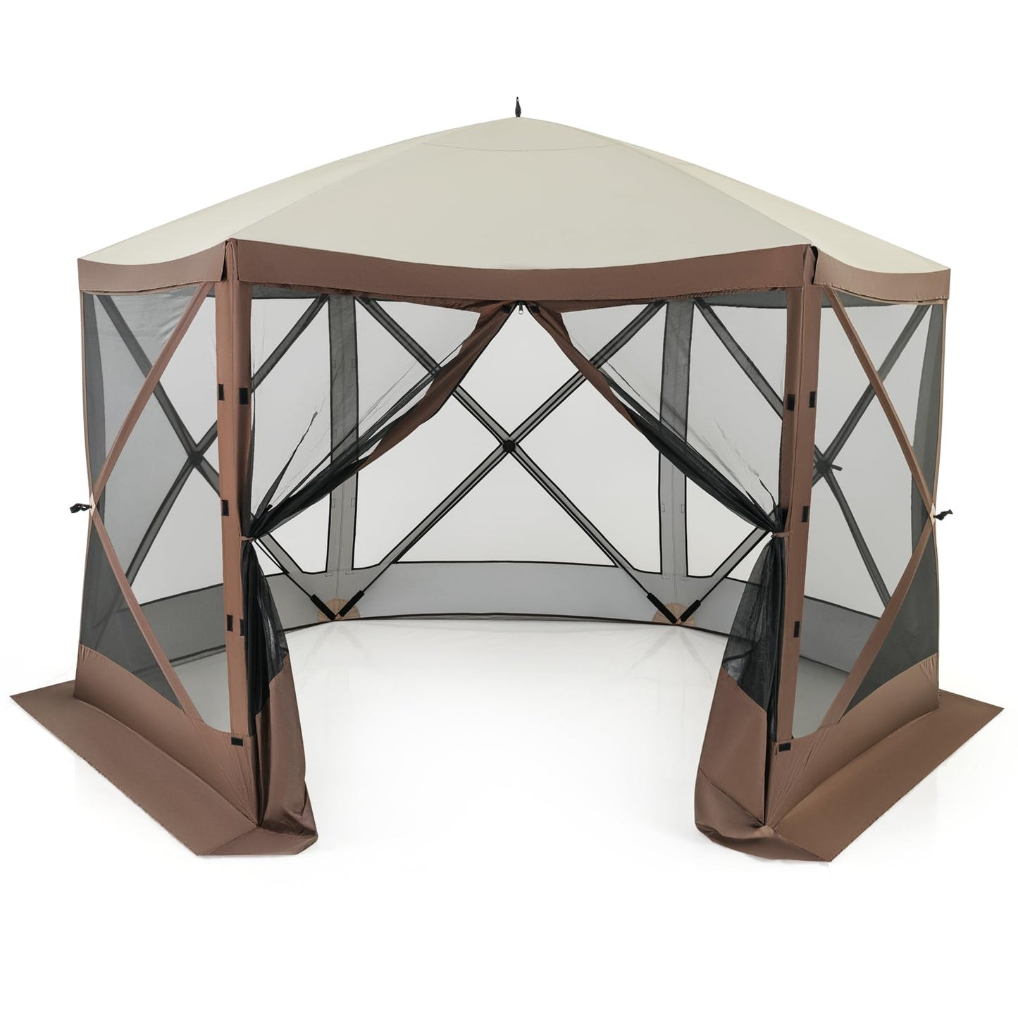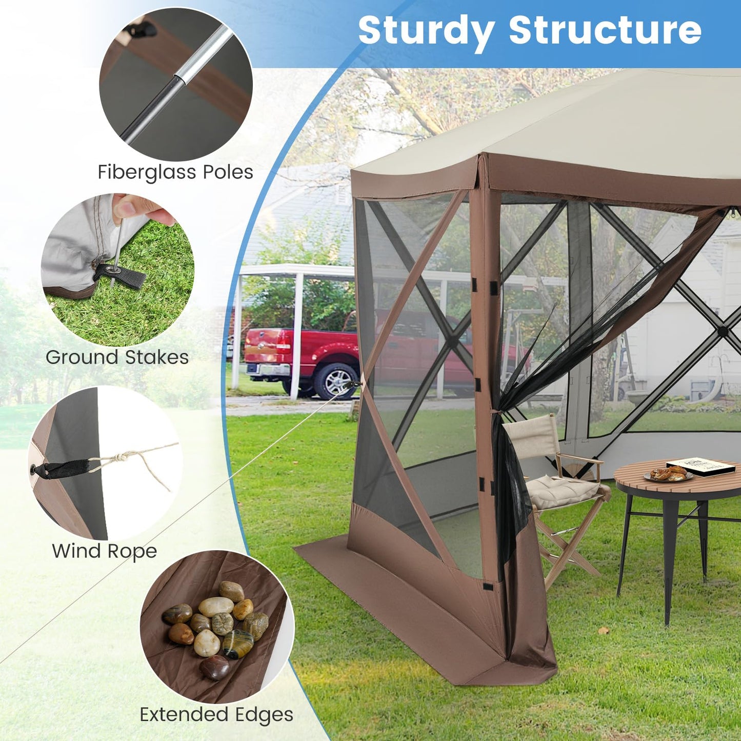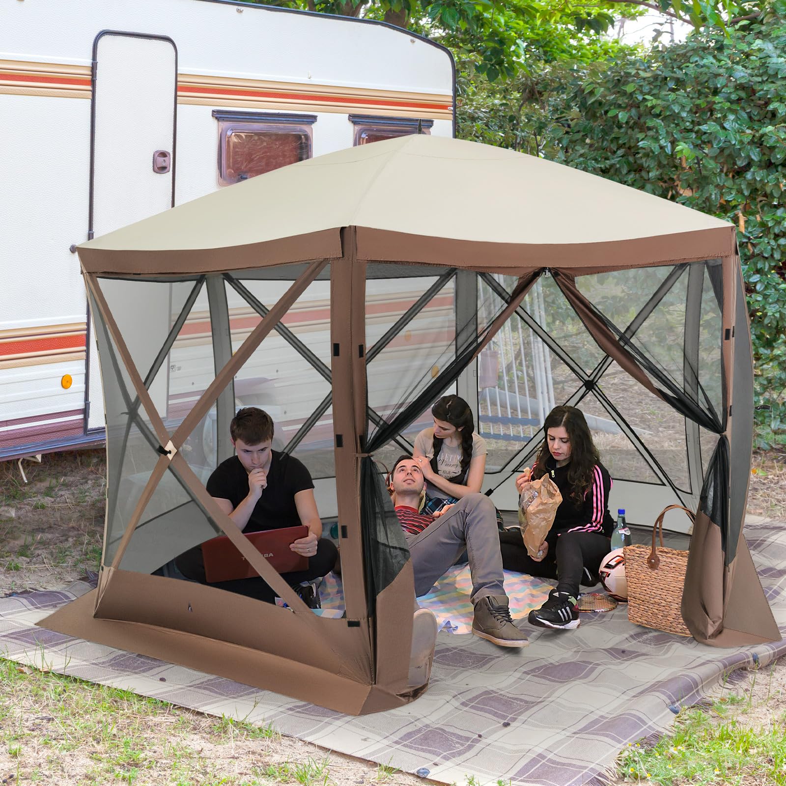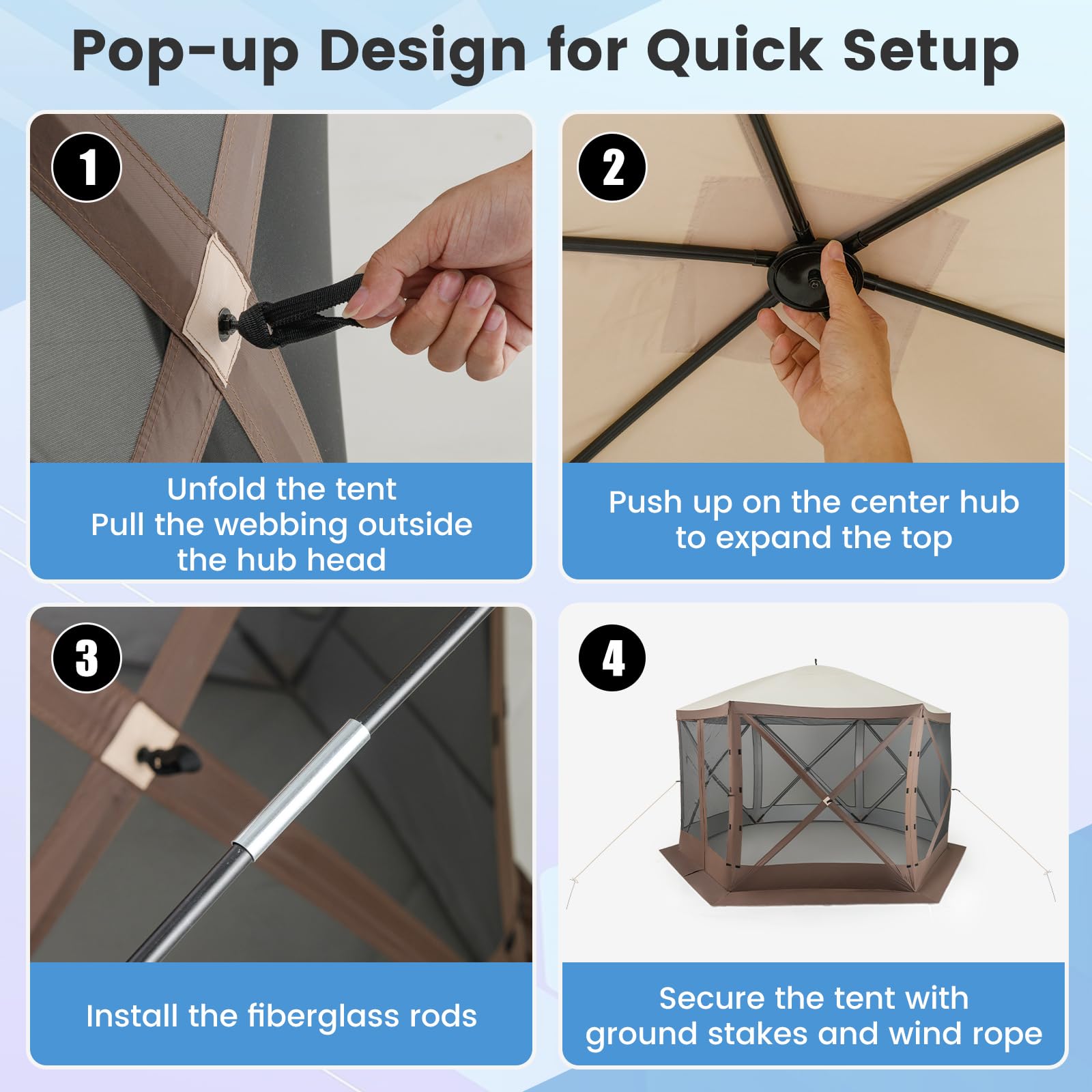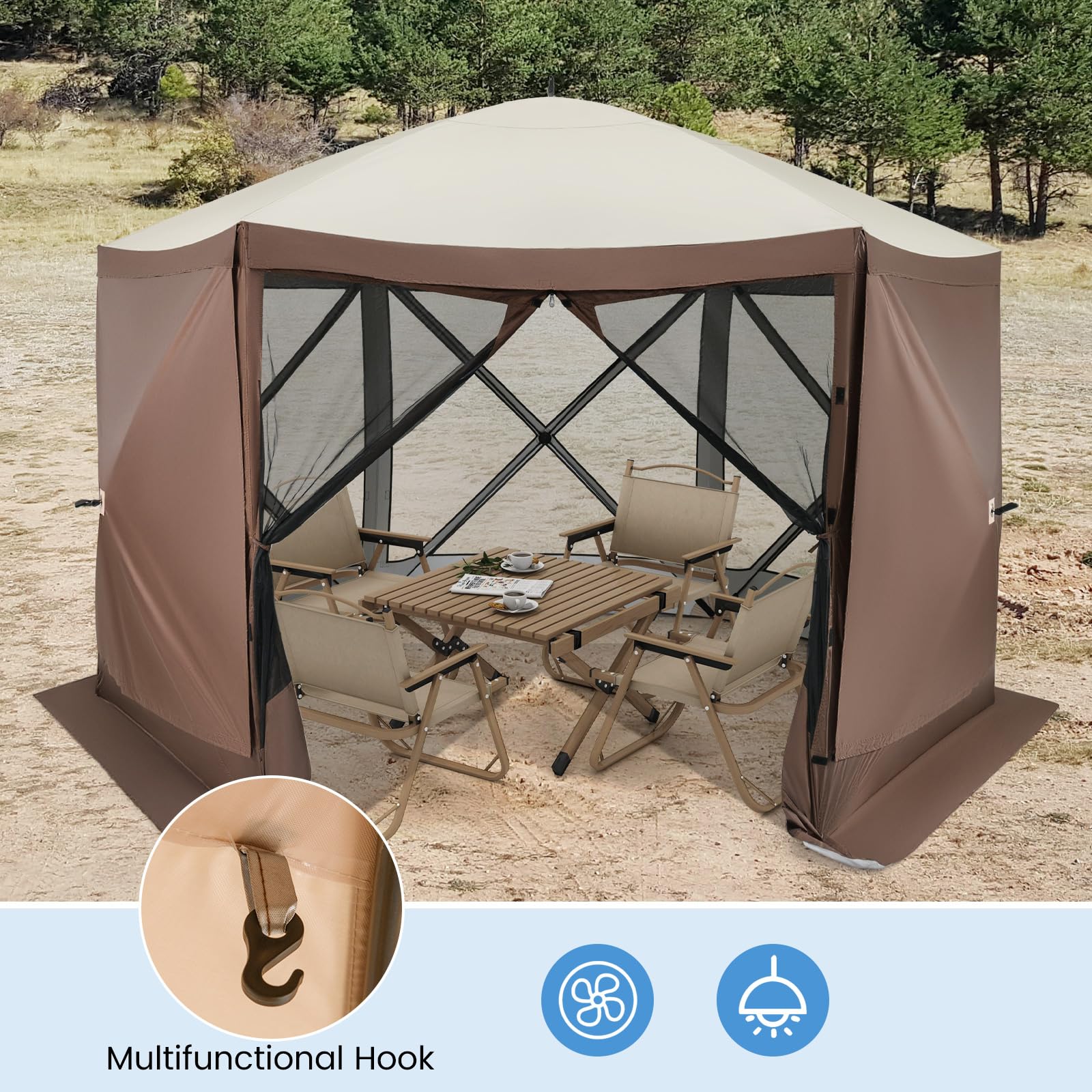 - Spacious Shading Space: The 11.5 x 11.5 ft 6-sided pop up screen tent provides a large shading area of 132 sq.ft, which can comfortably fit 6-8 people. It is perfect for various outdoor activities, such as camping, picnics, backyards, beaches, and more. Besides, there exists a portable carrying bag, allowing you to effortlessly take it anywhere you want.