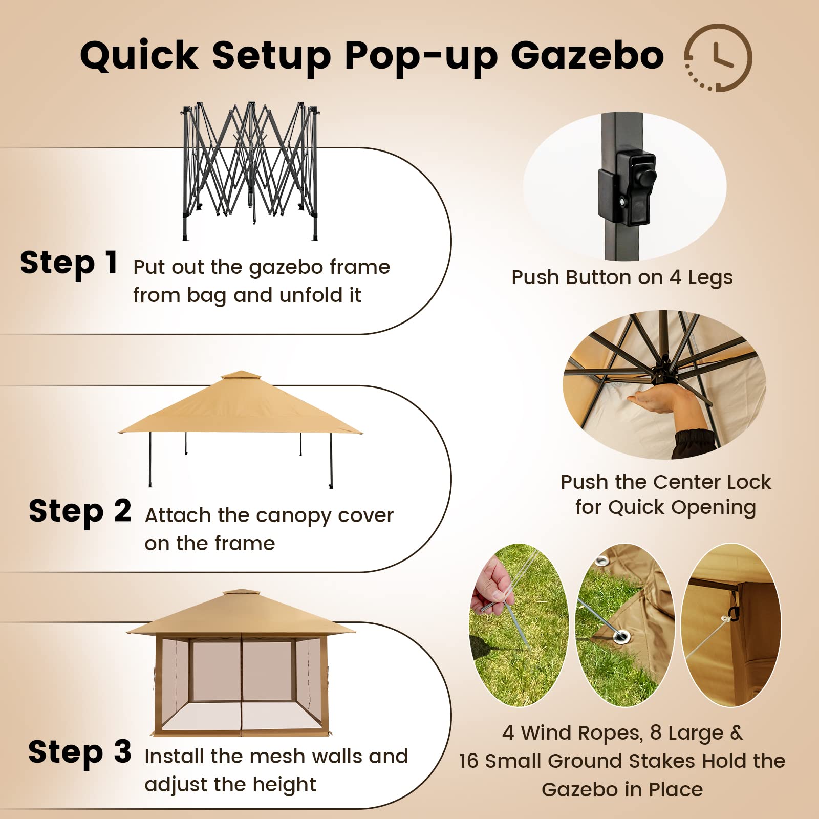 Tangkula 13' x 13' Pop-up Gazebo Canopy, Instant Setup Canopy Tent
