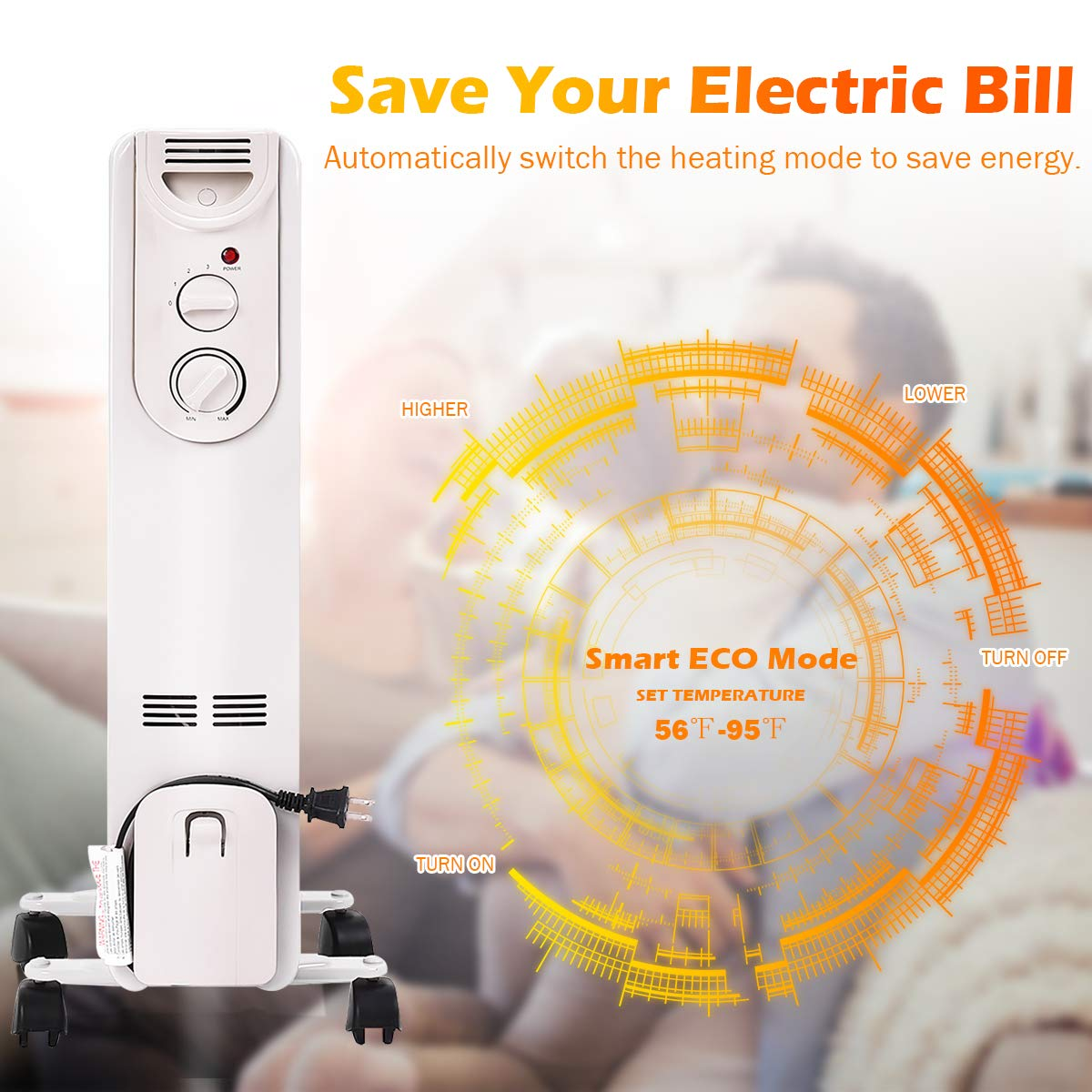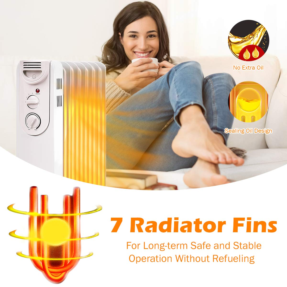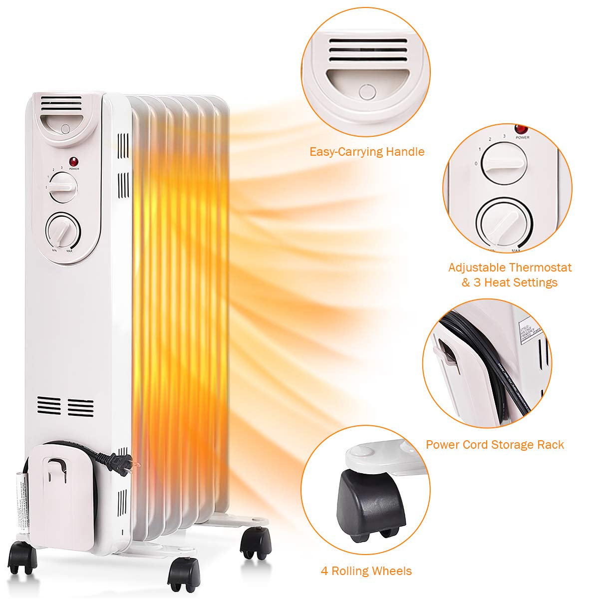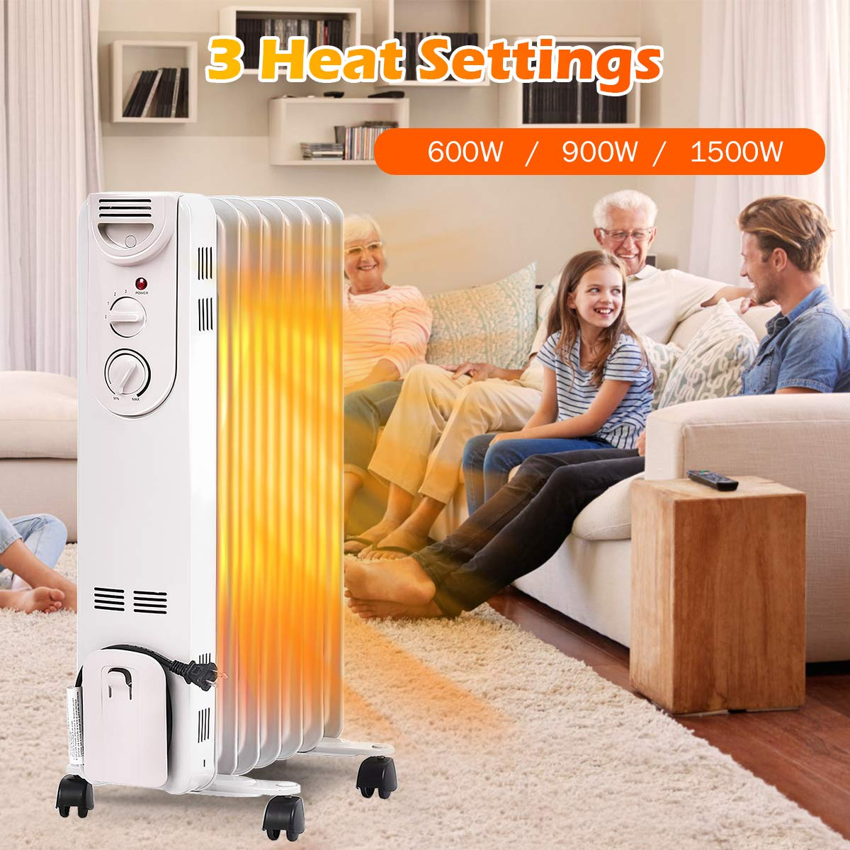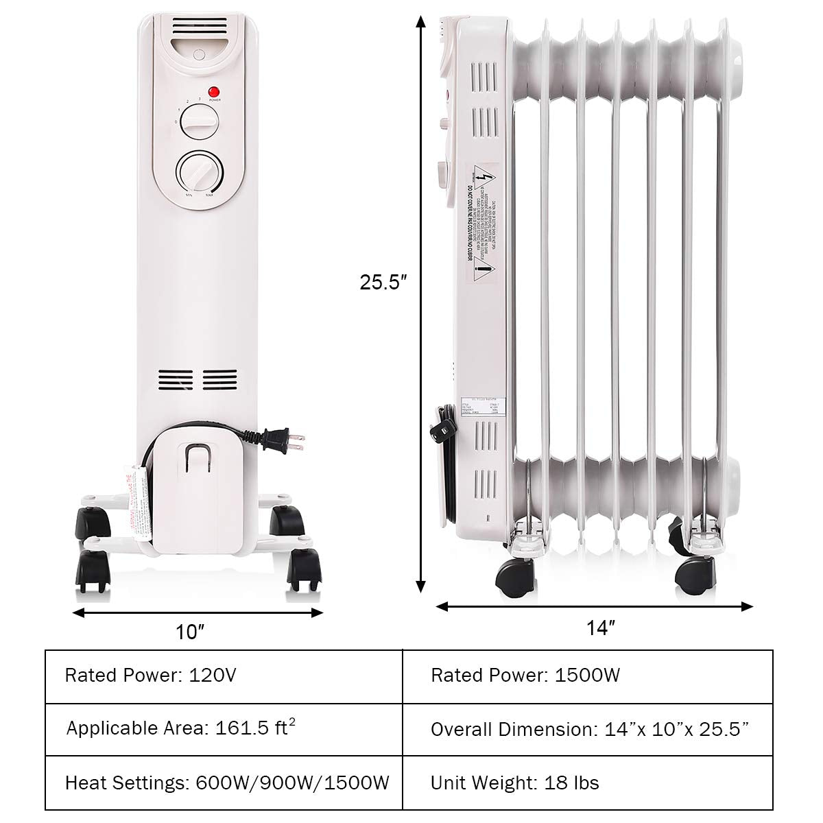 - Efficient Heating & Adjustable thermostat: With 7 oil-filled thermal slots, which are 5"wide and filled with 4 lbs of oil, the Tangkula radiator heater provides energy-efficient heating for medium to large rooms that need constant heat in the winter. The heater equips with 3 heat settings (600w, 900w,1500w) and an adjustable thermostat, you can customize the temperature according to your heating needs.