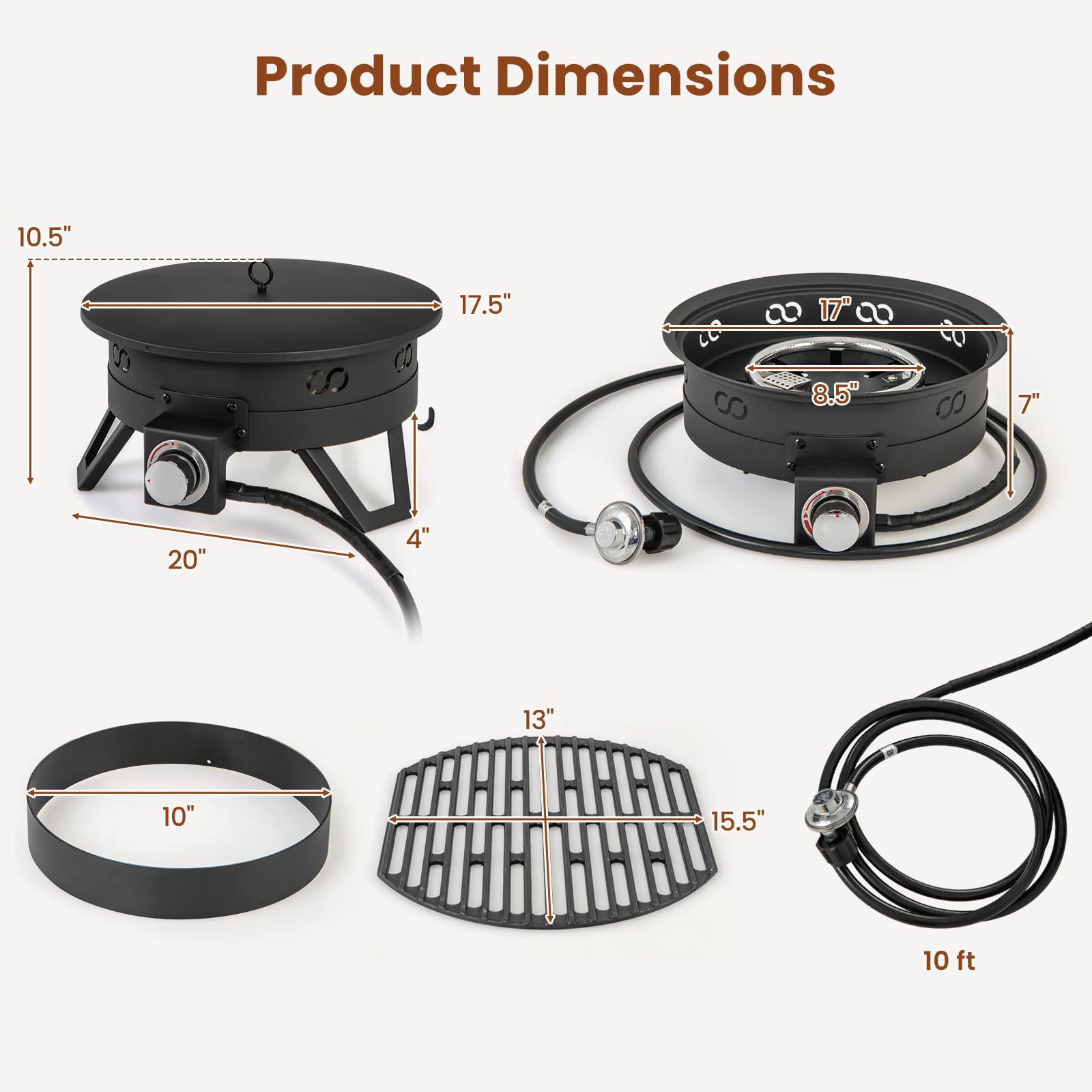 - Complete Accessories: Everything needed comes packed in one set, including lava rocks, a tank seat for 20 lbs propane cylinder, a cooking grill and a lid with handle. This comprehensive package ensures you can set up your fire experience right out of the box.