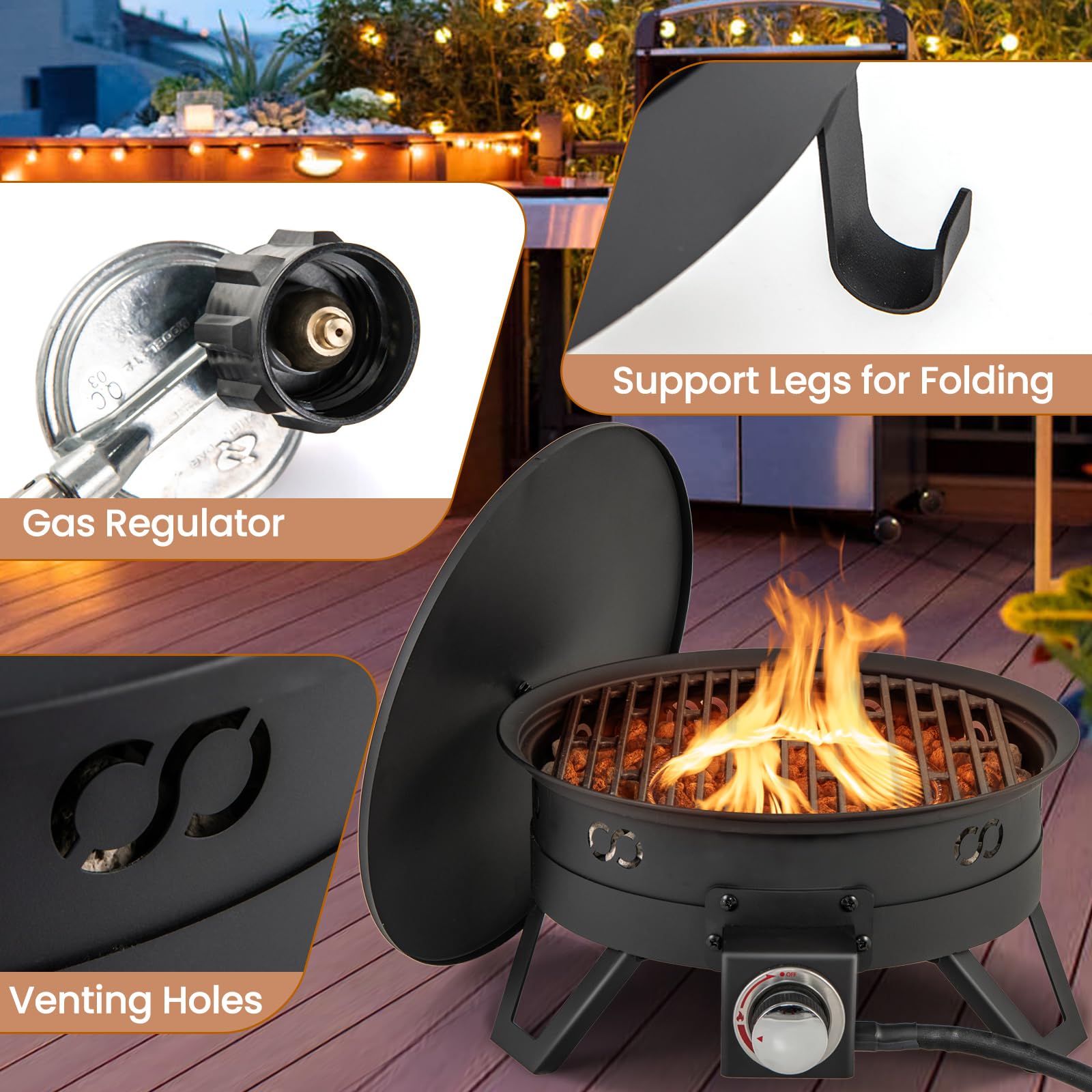- 2-in-1 Versatile Fire Pit: With a cooking grill included, this portable fire pit doubles as a grill, offering the perfect solution for both heating and outdoor cooking. Its 58,000 BTU heat output will quickly drive away your coldness.