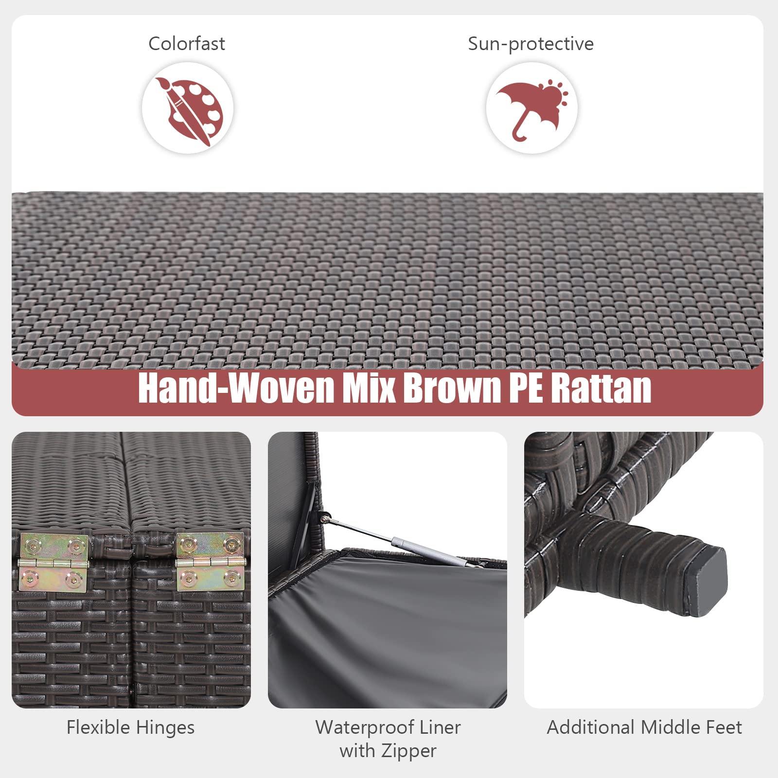 Tangkula 175 Gallon Outdoor Storage Box, Wicker Patio Deck Box with 2 Universal Wheels and Waterproof Zippered Liner