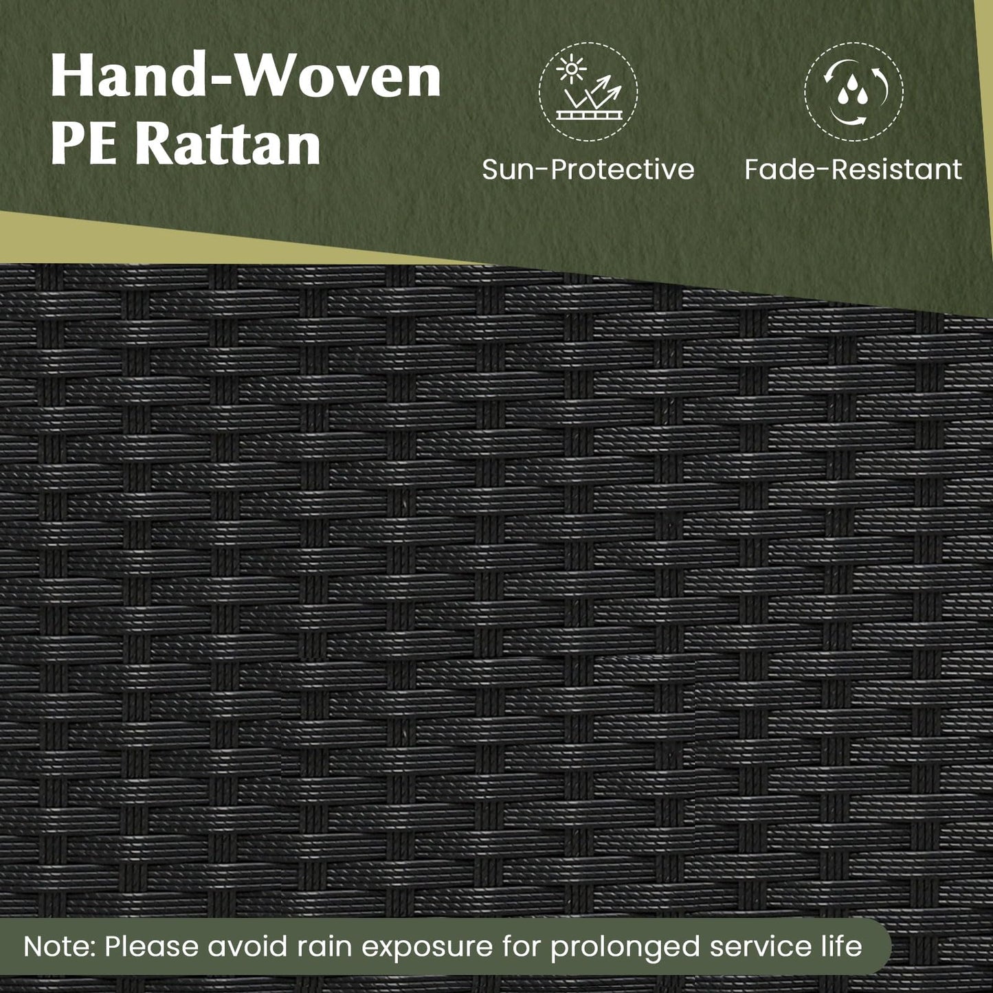 The patio table and chairs set, crafted from natural acacia wood and well-woven PE rattan, is a perfect complement for various outdoor spaces such as your patio, backyard, or porch. Its seamlessly transition to a bench allows for versatile use. This 2-in-1 furniture set is designed for stability, featuring a robust metal frame and reinforced structures for both the outdoor table and chairs set and the interchangeable garden loveseat. Thanks to the smart storage features, you are able to keep your belongings at close hand, enhancing your convenience and enjoyment.