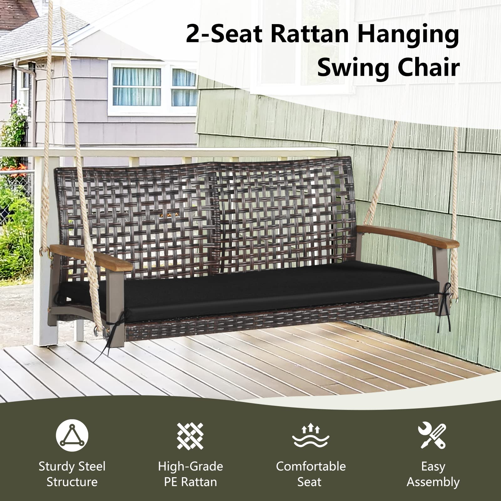 - Seats Up to 2 Persons: Our wicker porch swing with a deepened seat offers spacious space for 2 people to sit together and enjoy leisure time with this fantastic swing. The stylish mix of brown PE rattan makes it a perfect addition to your porch, backyard, patio, garden, or poolside.