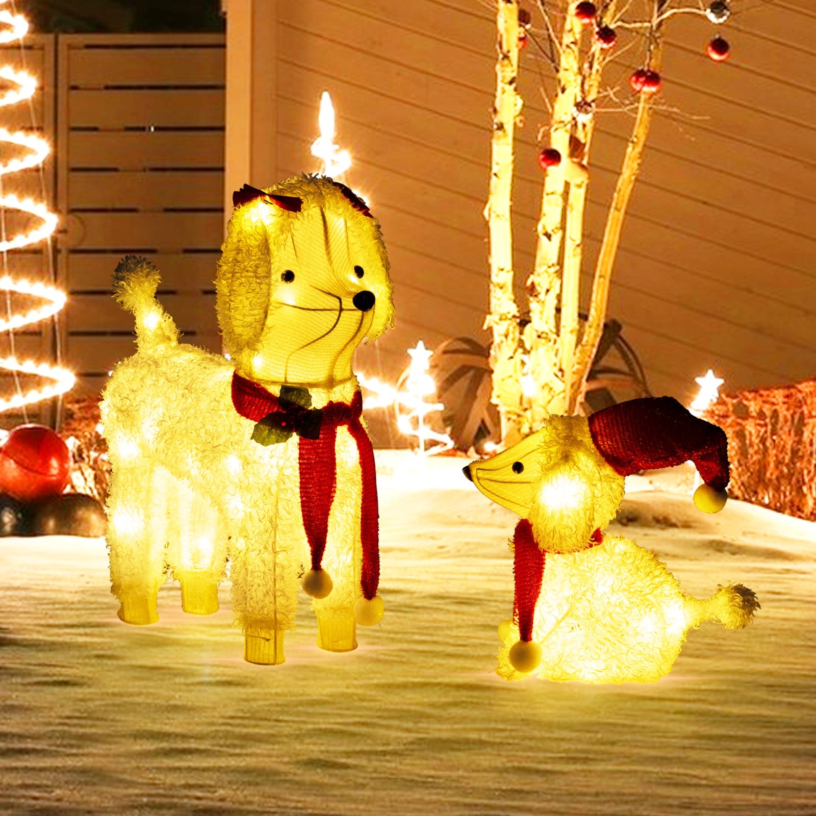 Celebrate a merry Christmas with our 2-piece lighted dogs!
