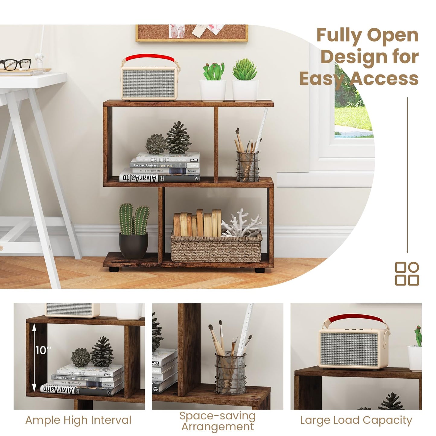 Tangkula 2 Tier Geometric Bookshelf, Freestanding Wood Display Shelf