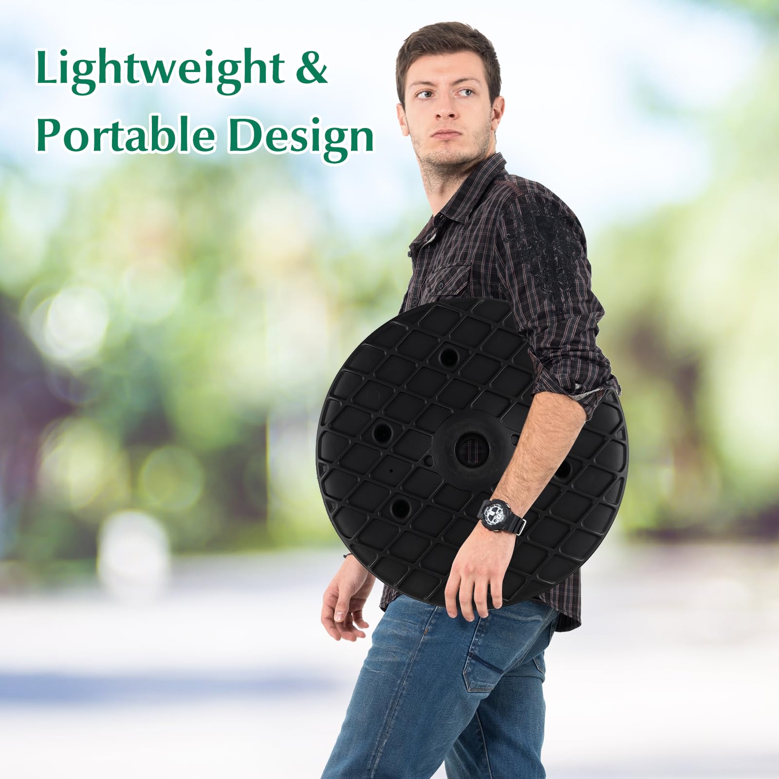 - Sturdy & Reliable Construction: The portable round table top is made of premium PE, which is waterproof, anti-wear, crack-resistant to withstand harsh conditions all year round. Besides, it is easy to clean by wiping the table tray with wet cloth. And the unique diamond-shape design will ensure distributed force to avoid deformation.