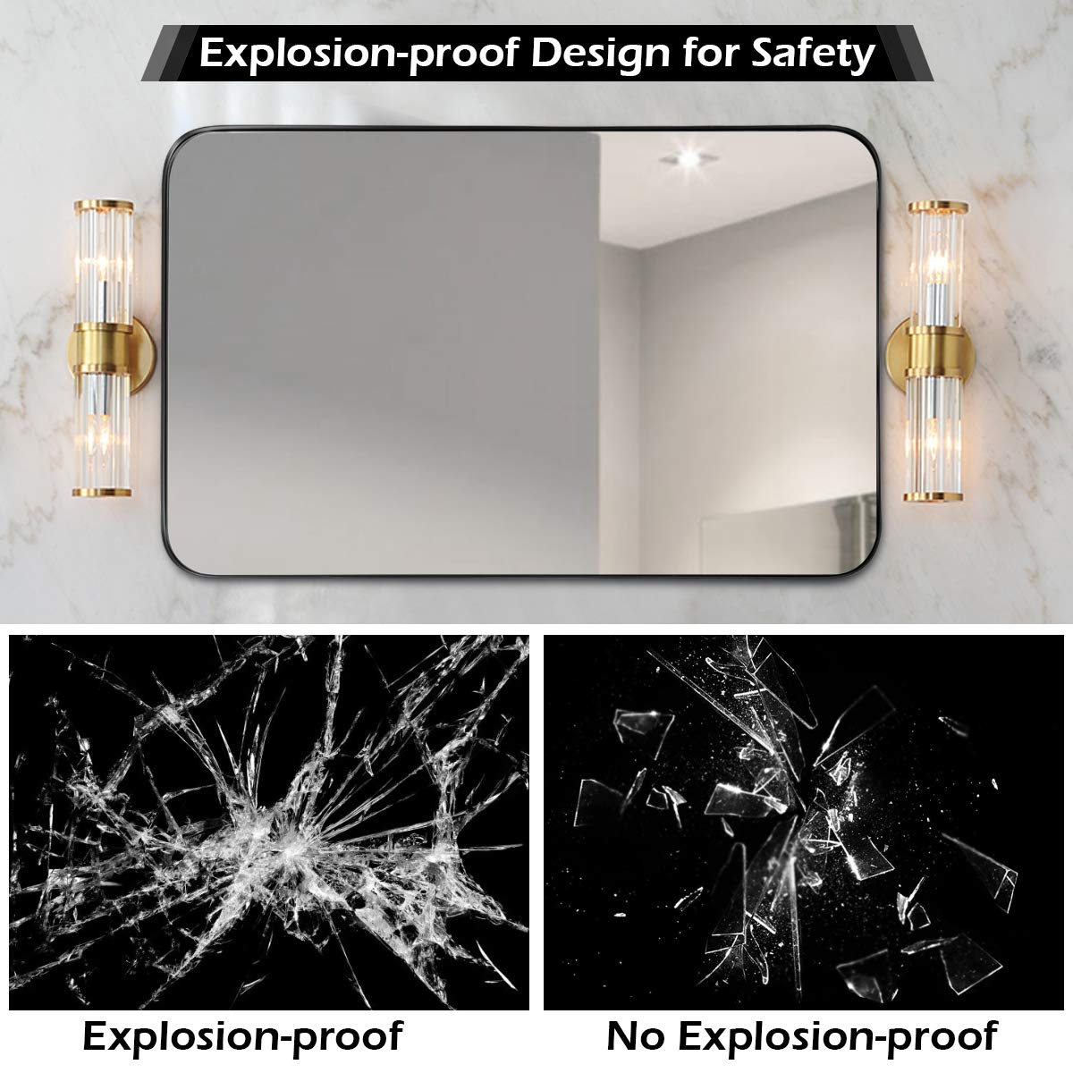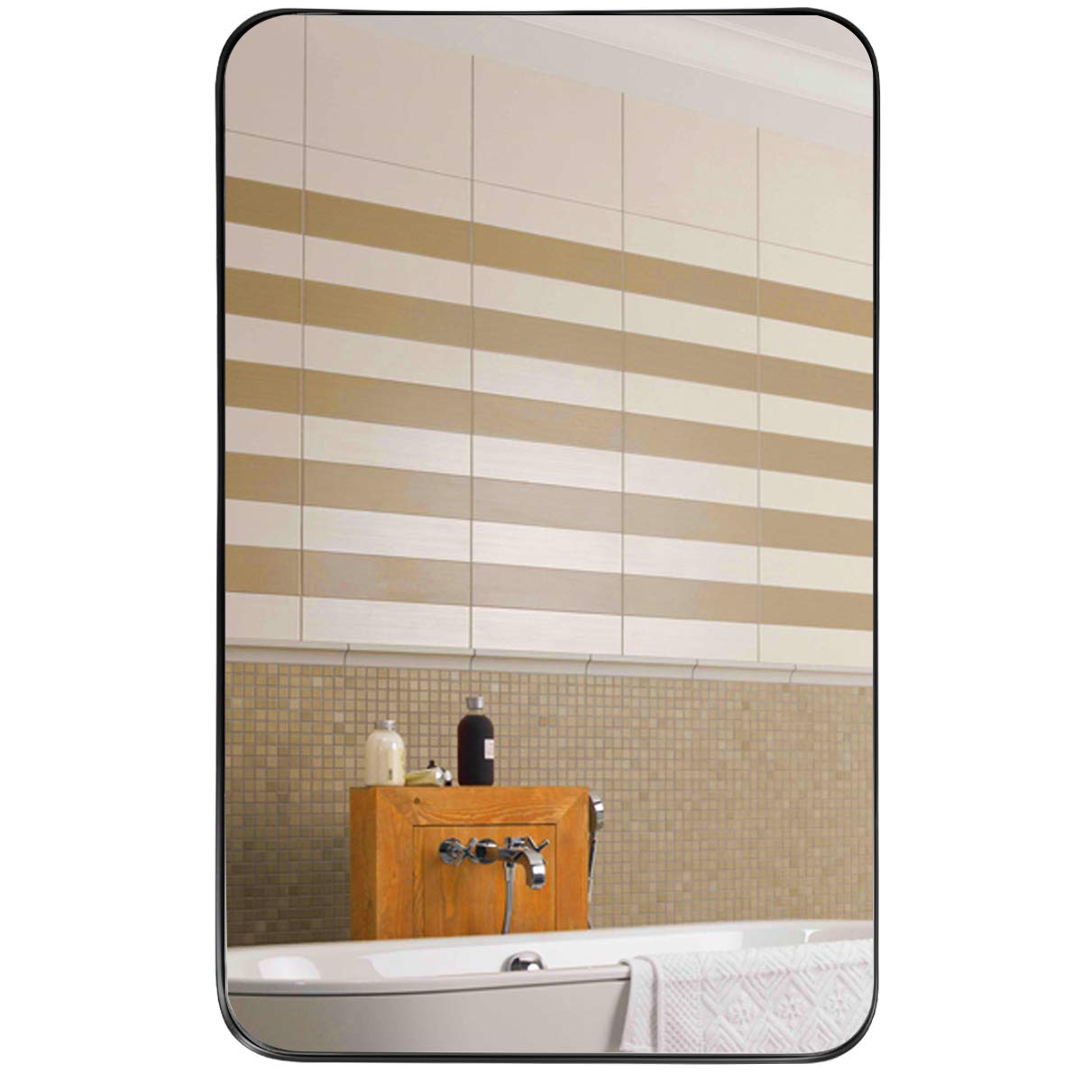 Are you looking for a practical and beautiful bathroom wall mirror for your home now? Our rectangular bathroom mirror combines wonderful quality with an elaborate appearance so it has a long lifespan. The frame of this modern mirror is made of premium power-coated metal which can acclimatize to humidity. Large-size mirror with high resolution can clearly show your beautiful face and fine clothes. Classic color and rounded corners make our mirror a perfect solution for adding beauty and light to your home. This wall mirror can be placed in the bathroom, living room, and hallway, and even used as your makeup mirror. Equipped with durable keyholes on the back, the wall mirror can be hanging firmly on the wall vertically or horizontally.