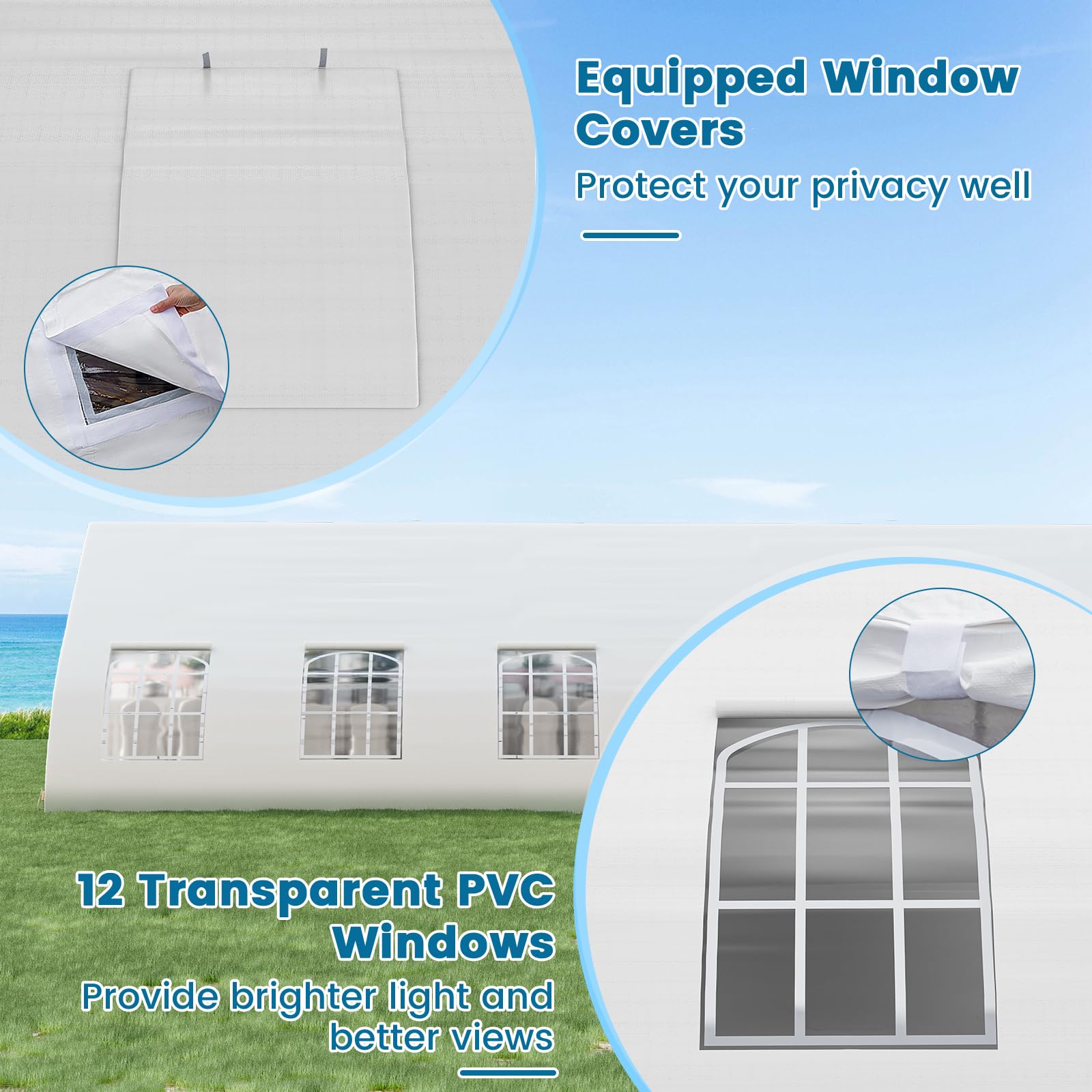 Tangkula 20x40 Ft Heavy Duty Party Tent, Large White Event Tent with Sidewalls, Zippered Door & 12 Windows
