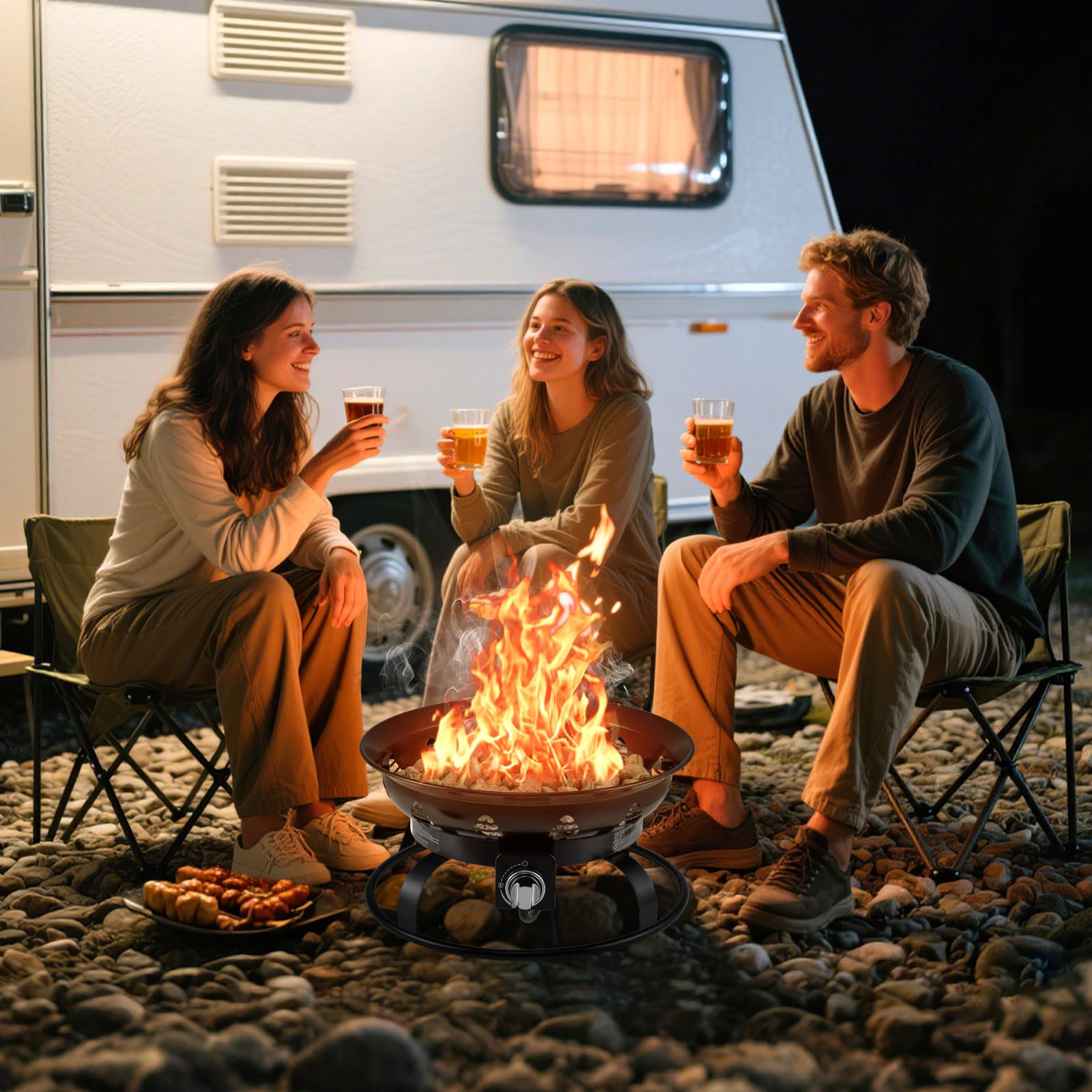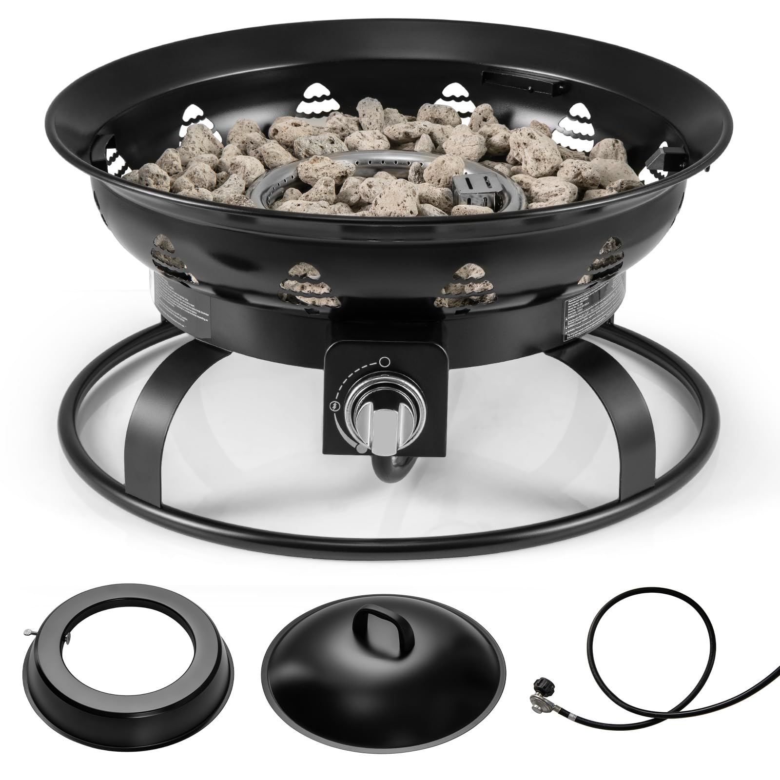This fire pit eliminates the need for wood or coal, providing a clean heat source. The lightweight and compact design allow for easy transport, so you can bring comfort to any outdoor setting. Capable of a potent 58,000 BTU output and enhanced with lava rocks, the firepit heater ensures a cozy and warm atmosphere at the beach, patio, or campsite. The ignition is simple and safe with a knob for quick lighting and flame adjustment. Constructed from premium cold-rolled steel with a 201 stainless steel burner, the fire bowl is built to last. Perfect for your next outdoor gathering, this propane fire pit with well-designed details promises satisfaction and utility.