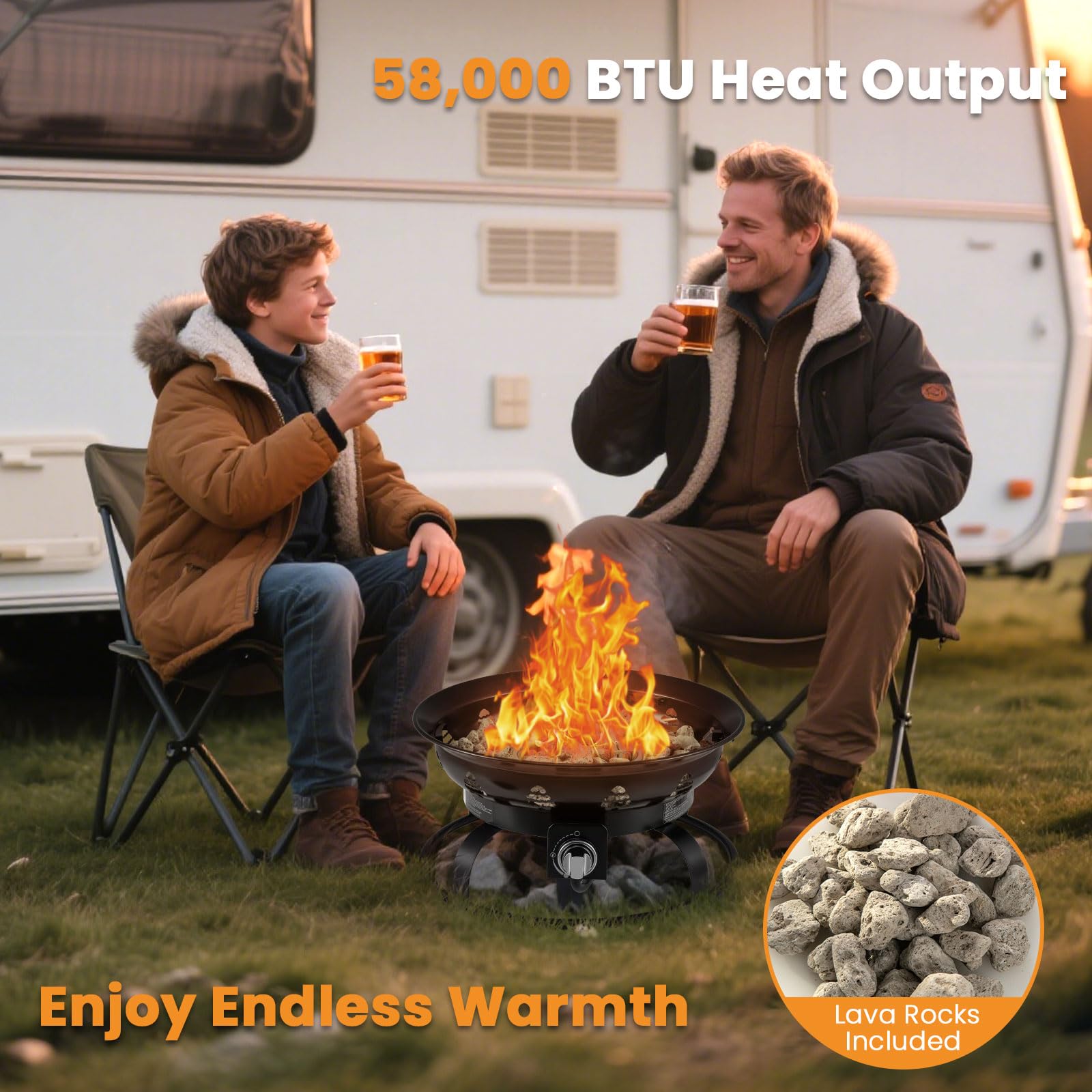 58,000 BTU heat output drives away your coolness