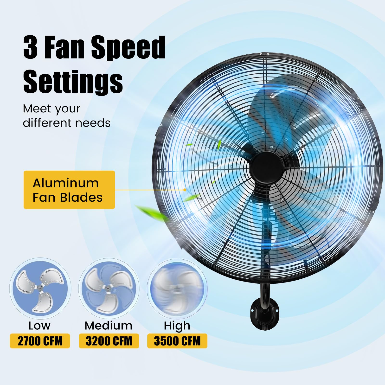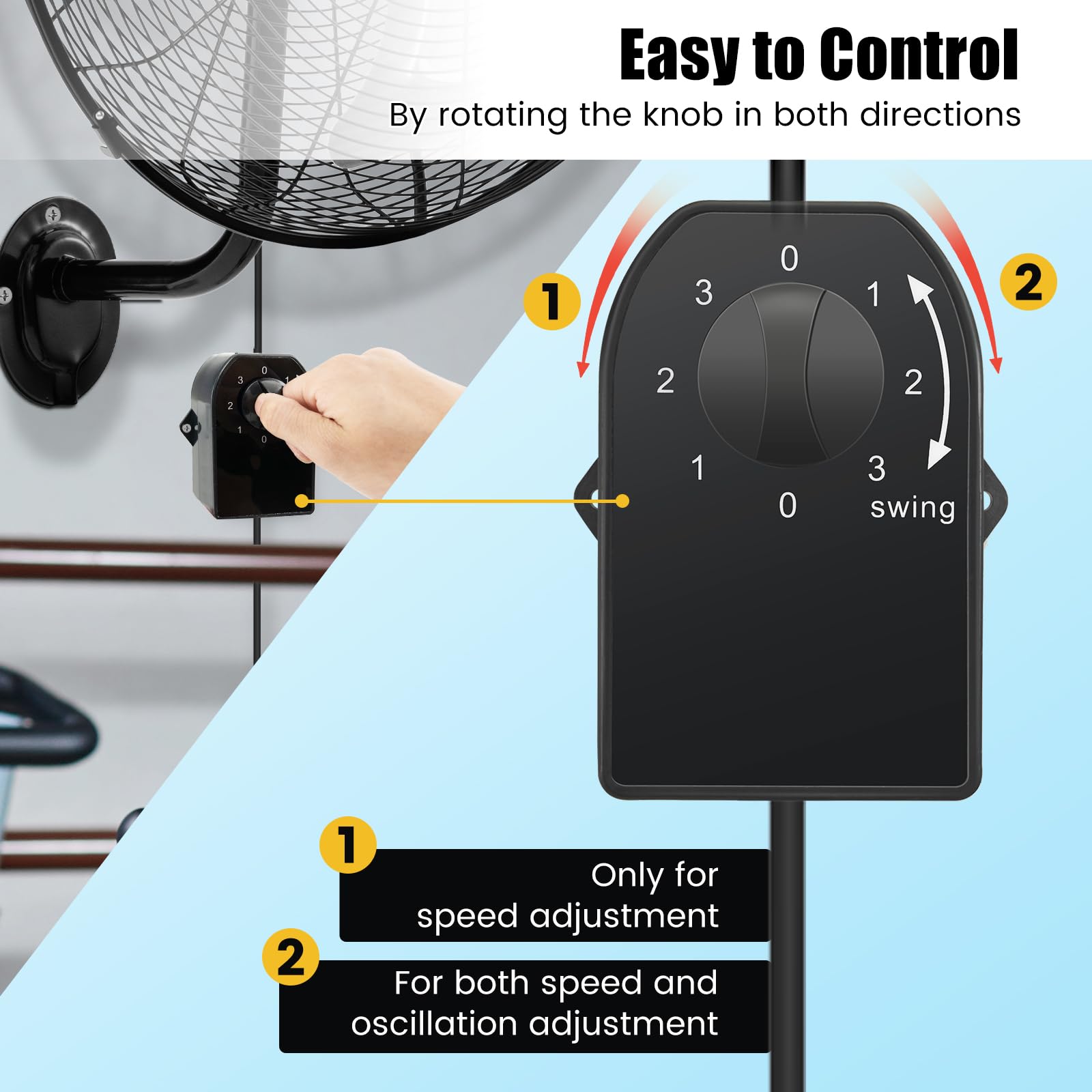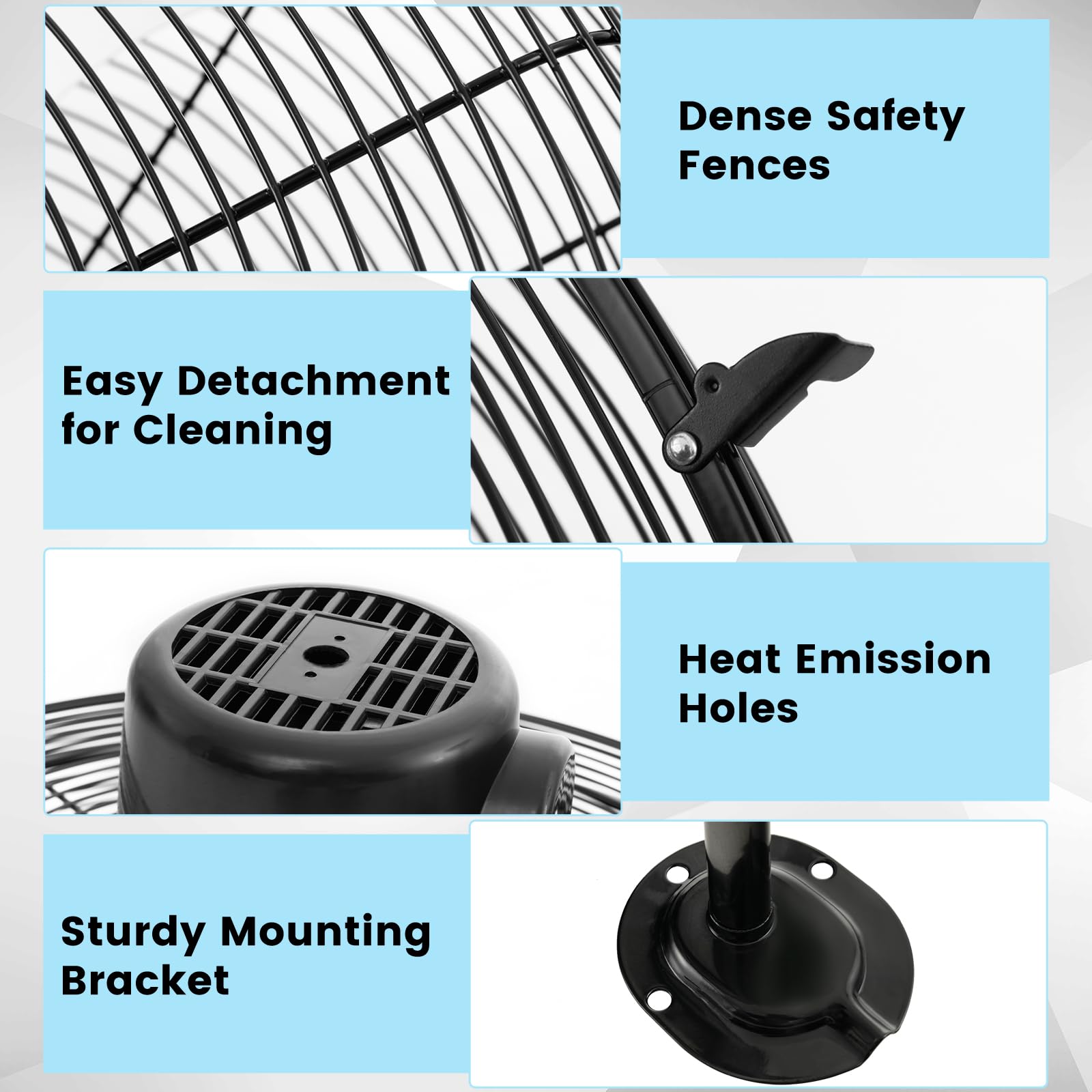 • Secured Scientific Use: The dense steel grill can effectively avoid accidental mids-touches while the fan is working. Featuring an authoritative ETL certification, the wall mount fan is safe enough for daily usage. Also, at the back of the fan head, there are regular cooling holes to help the motor dissipate heat instantly.