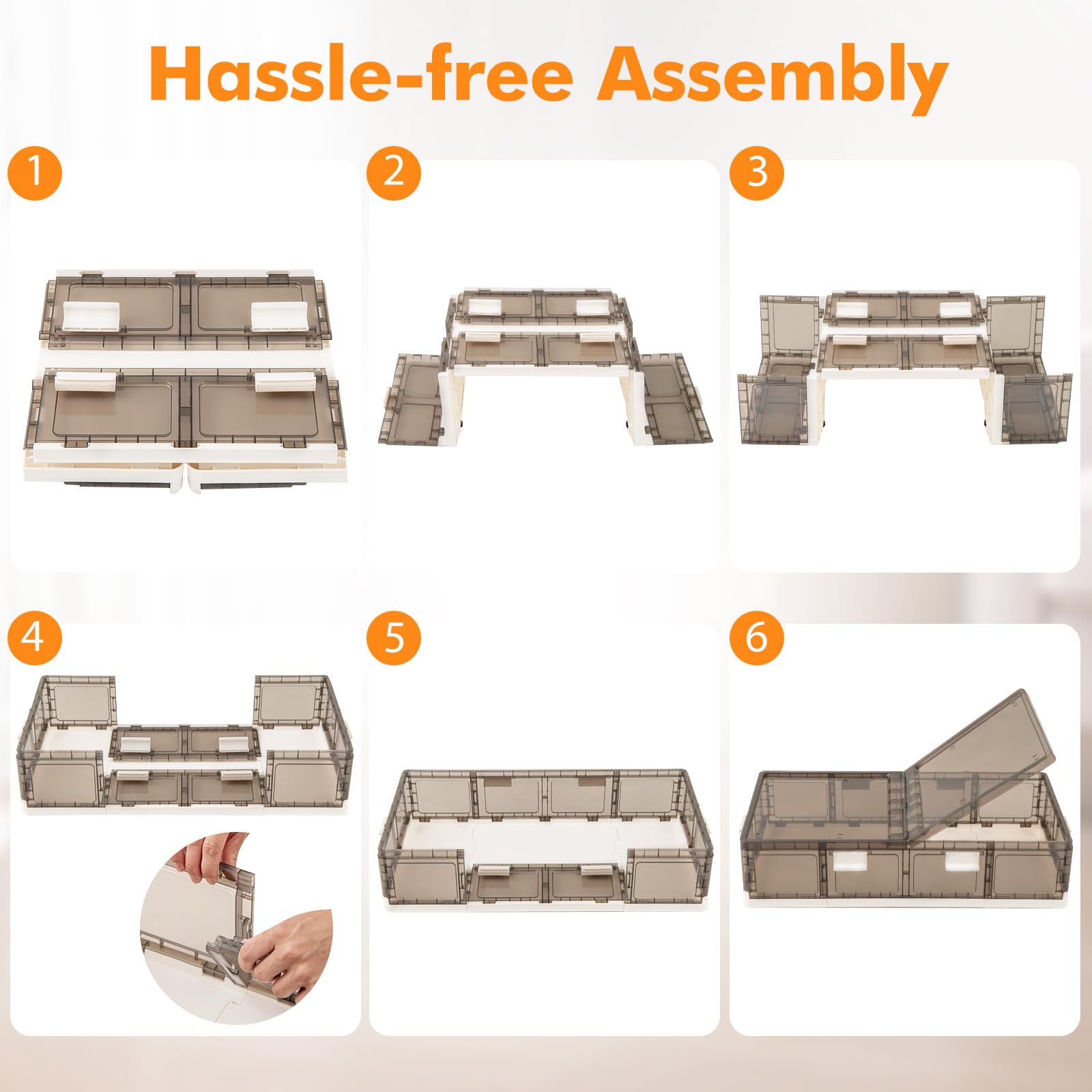 Constructed from anti-wear PP material, these containers are built to last. The dual-opening lids offer easy access from both sides, while the locking buckles ensure that the items inside are safely secured. With the smooth and quiet universal wheels, you can effortlessly move your storage bins from one room to another. The stackable design enables you to make the most of vertical space in your area. When not needed, these flexible storage bins can be collapsed to save space, making them perfect for compact living spaces such as small apartments, dormitories, closets, or corners of bedrooms.