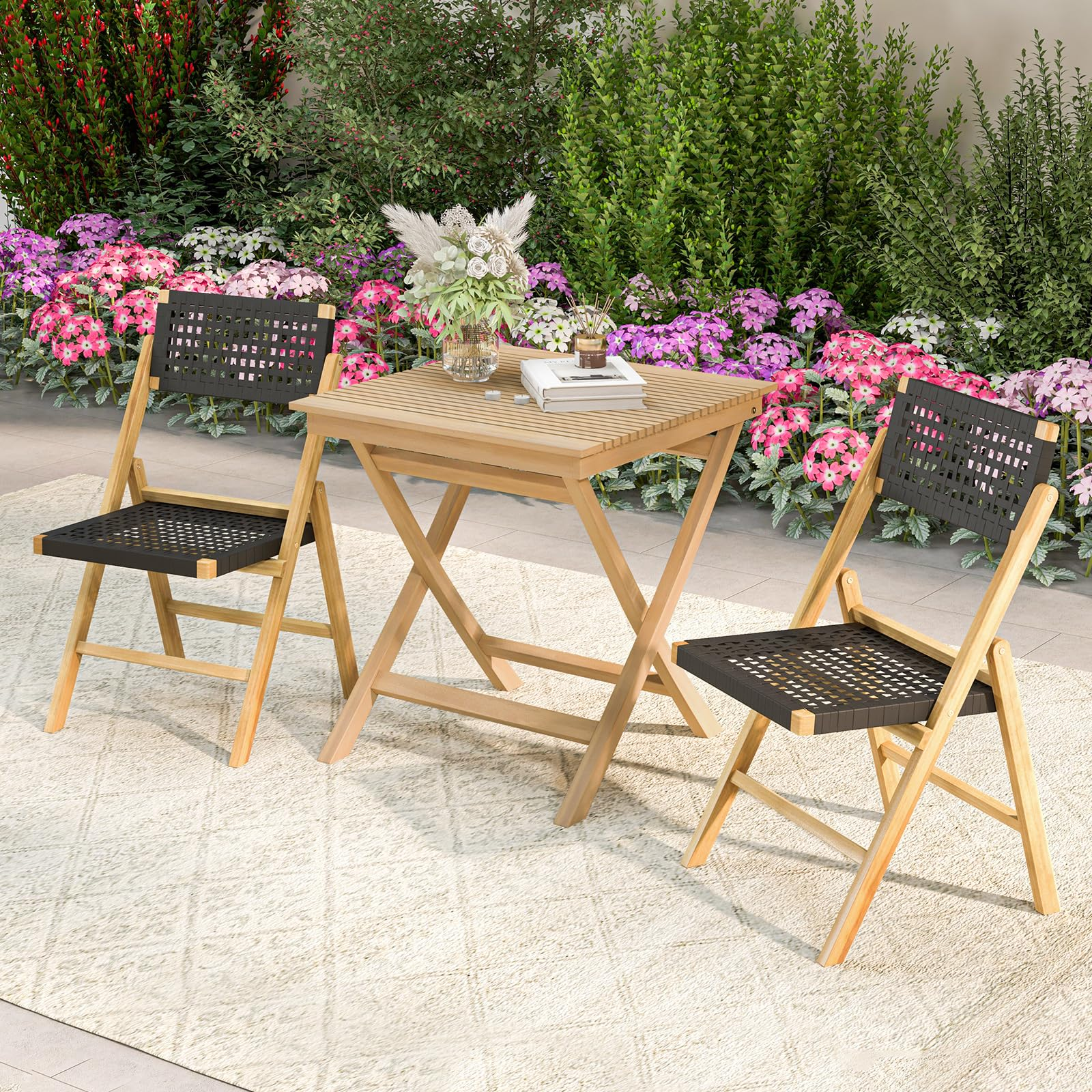 • Well-Designed Details: This premium patio table features thick tabletop and X-shaped structure for extra stability. And the slatted design effectively avoids water accumulation.