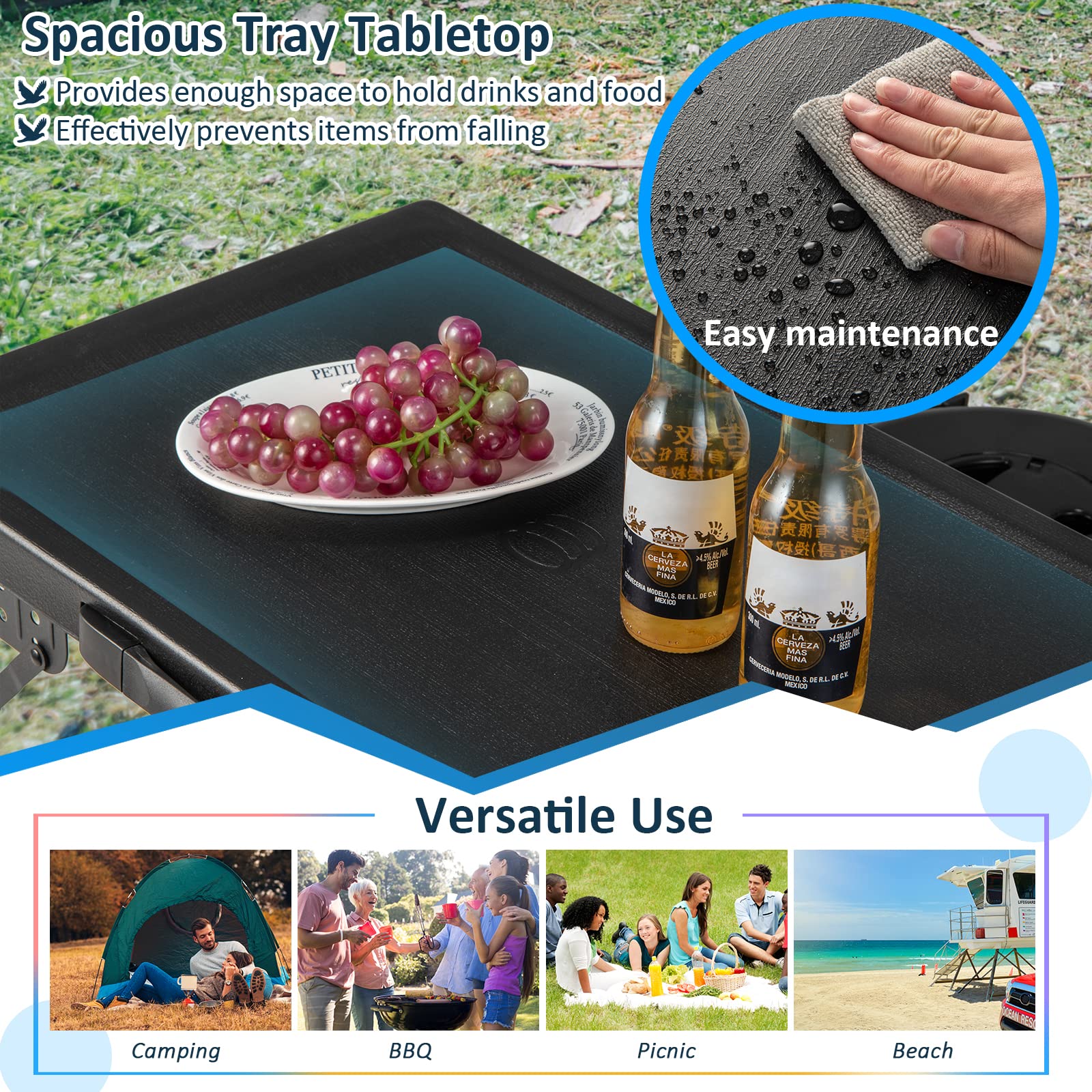 - Large Tabletop & Stable Structure: The spacious tray tabletop measures 29"x 16"(L x W), providing enough space to hold drinks and food while effectively preventing items from falling. You can also fold the supporting legs, using it as a tea table. Besides, the table is supported by a rustproof and high-strength aluminum alloy frame, ensuring good stability and a large loading capacity of 66 lbs.