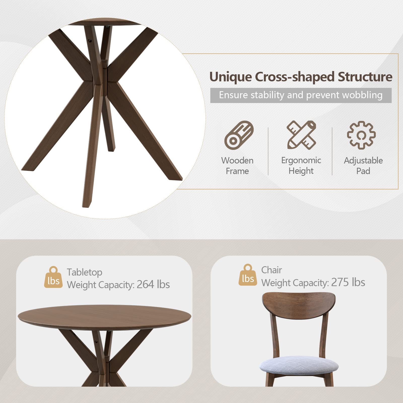 • ROBUST CONSTRUCTION FOR LONGEVITY: Constructed with a solid tabletop, the table is supported by cross-type legs that provide robust stability with a weight capacity of 264 lbs. The chairs feature solid rubber wood legs and additional support under the seat which allows a high weight capacity of 275lbs, making it a sturdy and long-lasting choice.