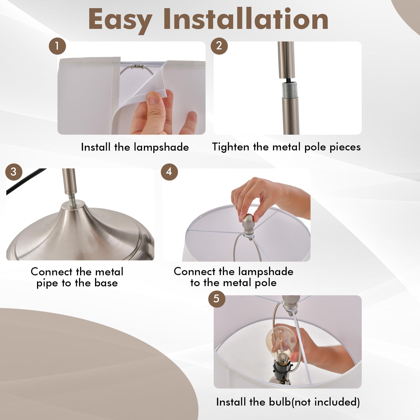 - [Easy Installation]: The standing lamp and beside lamp set is easy to install with detailed instructions. Simply install the lampshade, tighten the metal pole pieces, connect the metal pipe to the base, connect the lampshade to the metal pole and then install the bulb(not included).