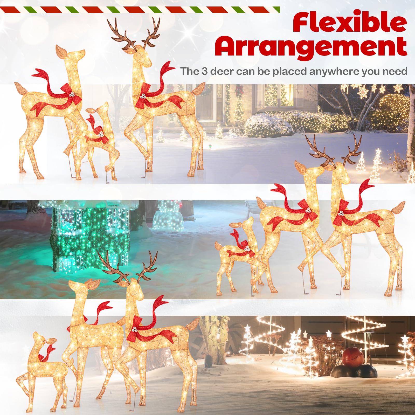 - Long-Lasting Outdoor Use: Made of weatherproof materials, this deer family set is IP44 waterproof, windproof and snowproof. These 3 decorative deer always remain dazzling, ensuring your holiday display shines bright year after year.
