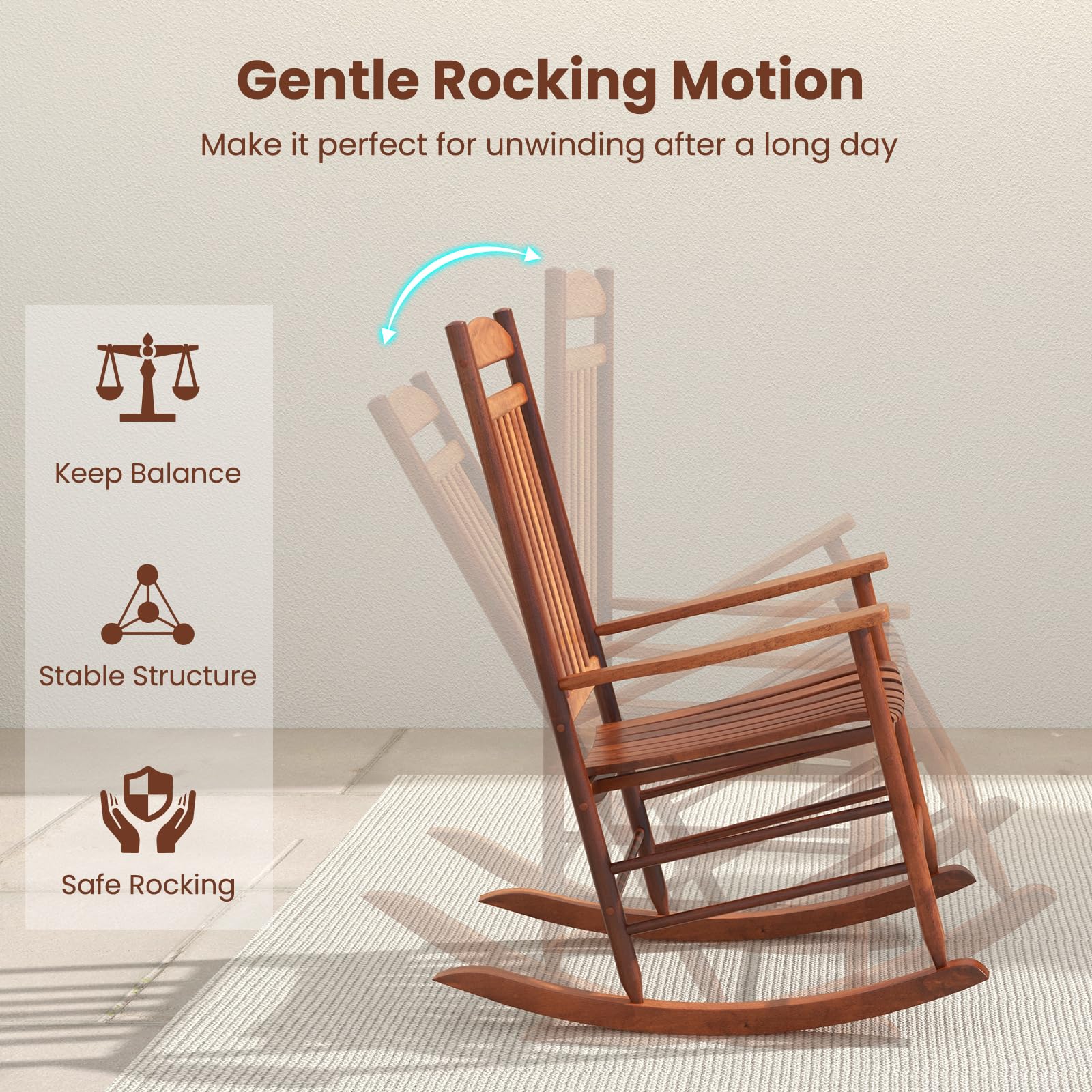 - Comfy Porch Rockers: The high back of each patio chair offers excellent support and comfort for stylish relaxation and gentle rocking. The wide armrests and contoured seat enhance the coziness.
