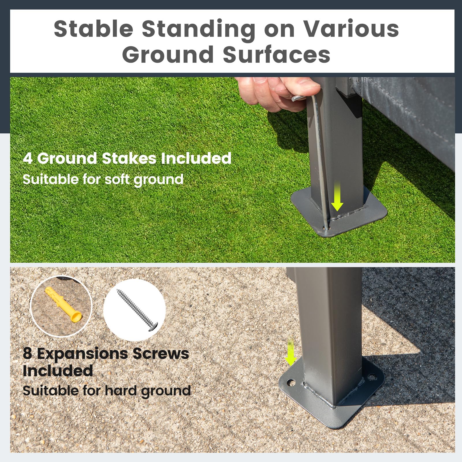 Suitable for hard ground with 8 expansions screws included