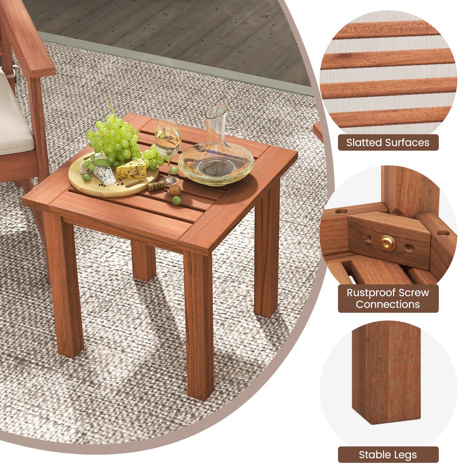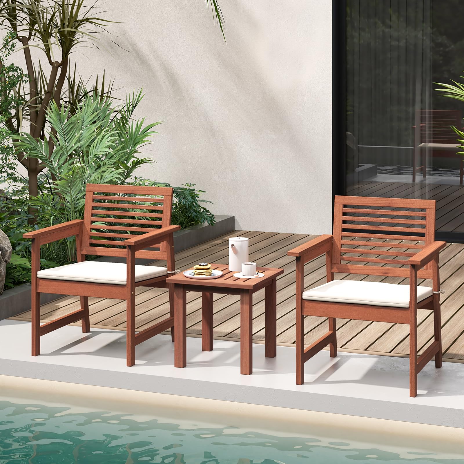 - Hardwood Material: Crafted from premium hardwood, this 3-piece patio furniture set features solid construction to resist wear and tear, and offers exceptional durability and timeless charm to enhance your outdoor space.