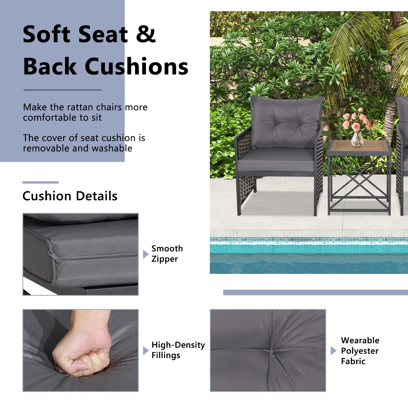 - Relax Anywhere You Want: The combination of rattan and acacia wood adds a sense of nature to the whole patio furniture set. Thus, this nice-looking wicker chair set will be perfect for multiple outdoor occasions, such as the backyard, poolside, small balcony, and front porch.