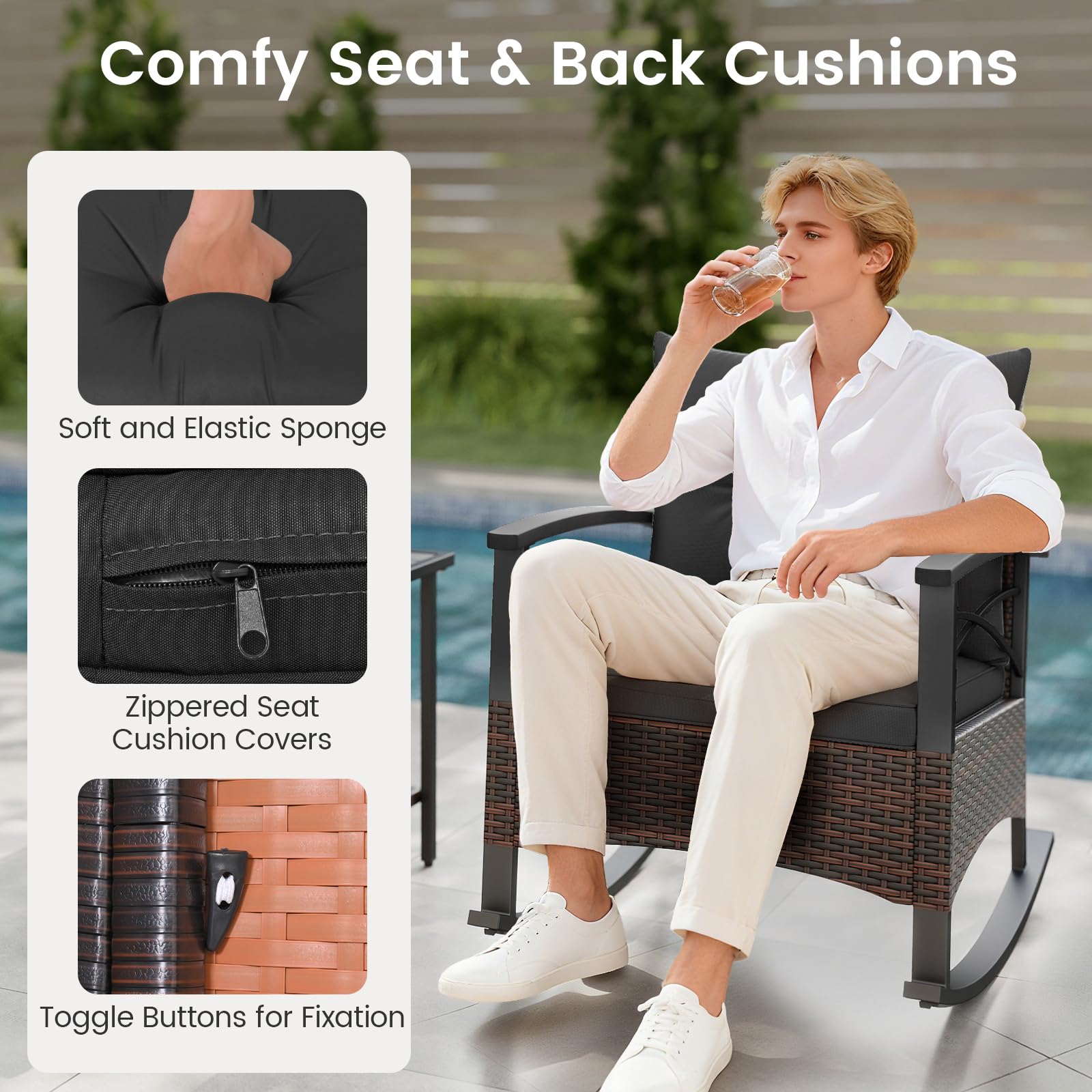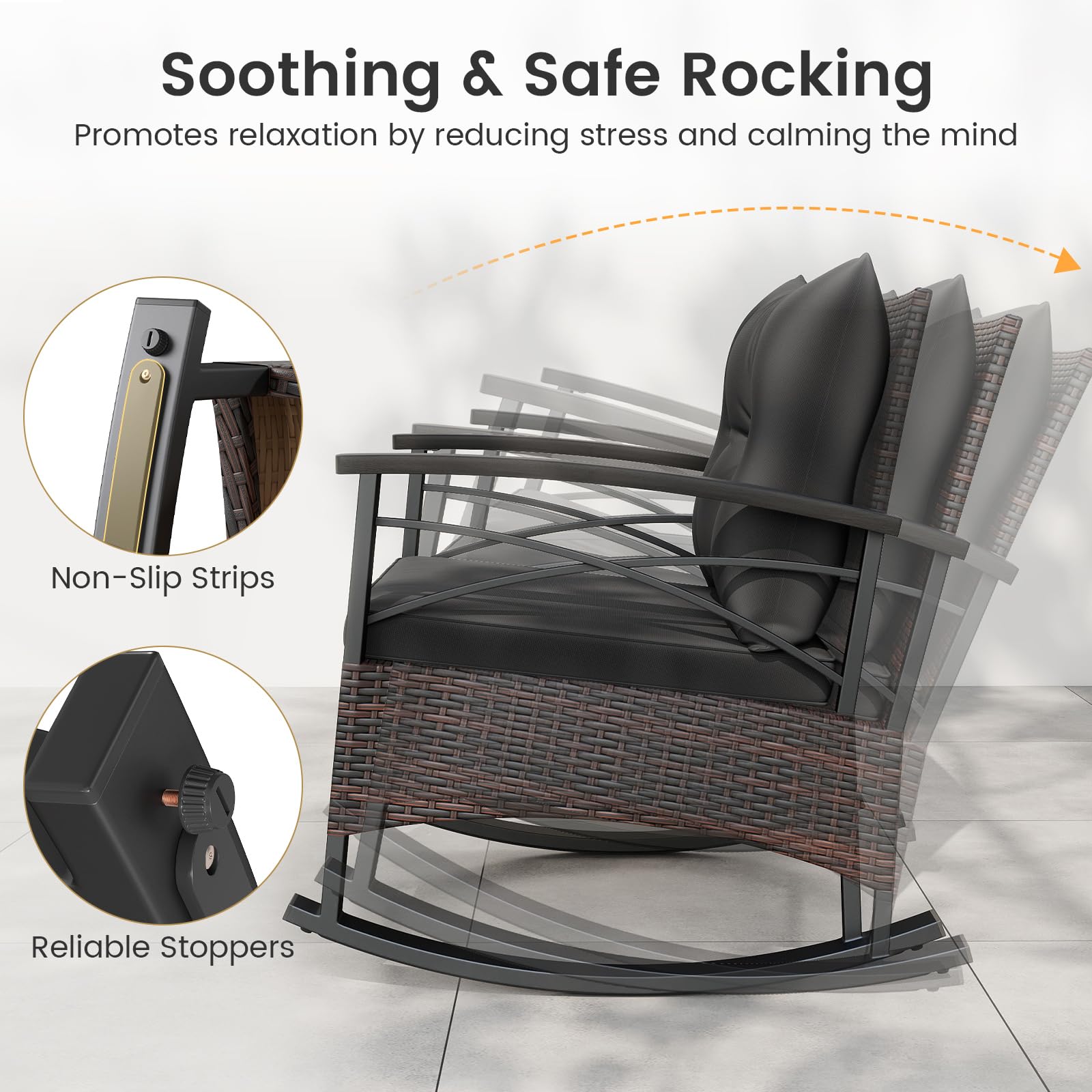 Experience ultimate outdoor comfort with this elegant 3-piece patio rattan rocking set.