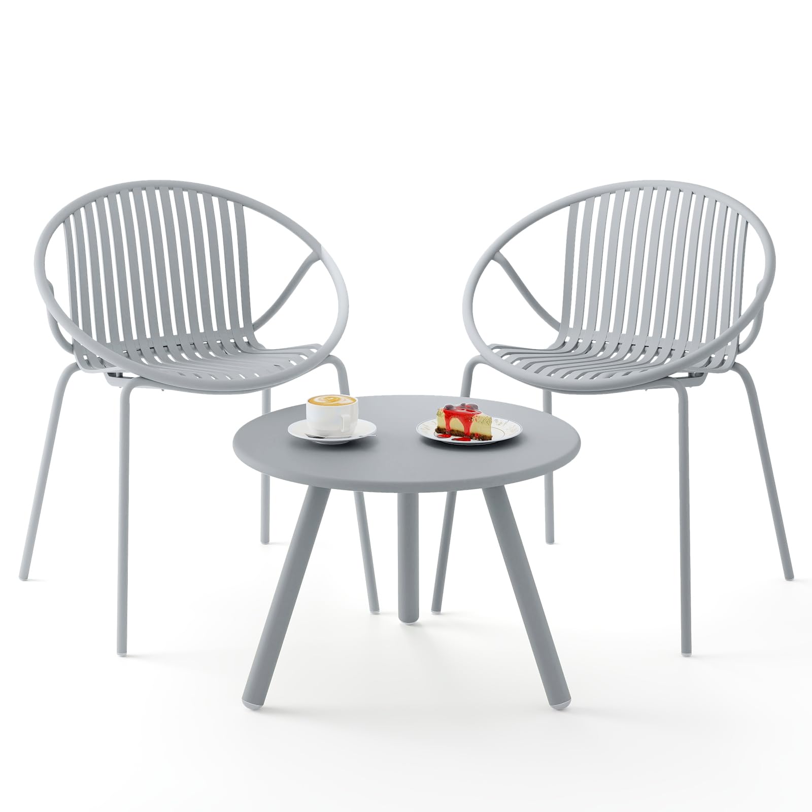 • 3-Pieces Patio Bistro Set: Elevate your outdoor space with this chic patio chair and table set. The set includes a round coffee table and 2 chairs. You can use them separately or in combination to increase the flexibility of furniture arrangement.
