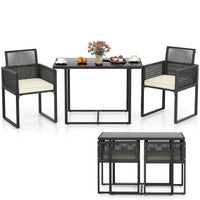 The 42.5" spacious tempered glass table offers ample space to place food and drinks. And the 2 chairs with soft cushions make you and your partners much more relaxed. Moreover, the chairs and table are quite sturdy with a heavy-duty metal frame. The adjustable footpads make them stand more stably. Space-saving design is one of the highlights, too. You can push the chairs with folded backrests under the table to save a lot of space. Comfortable, elegant, and space-saving, this patio wicker dining set will meet all your demands.