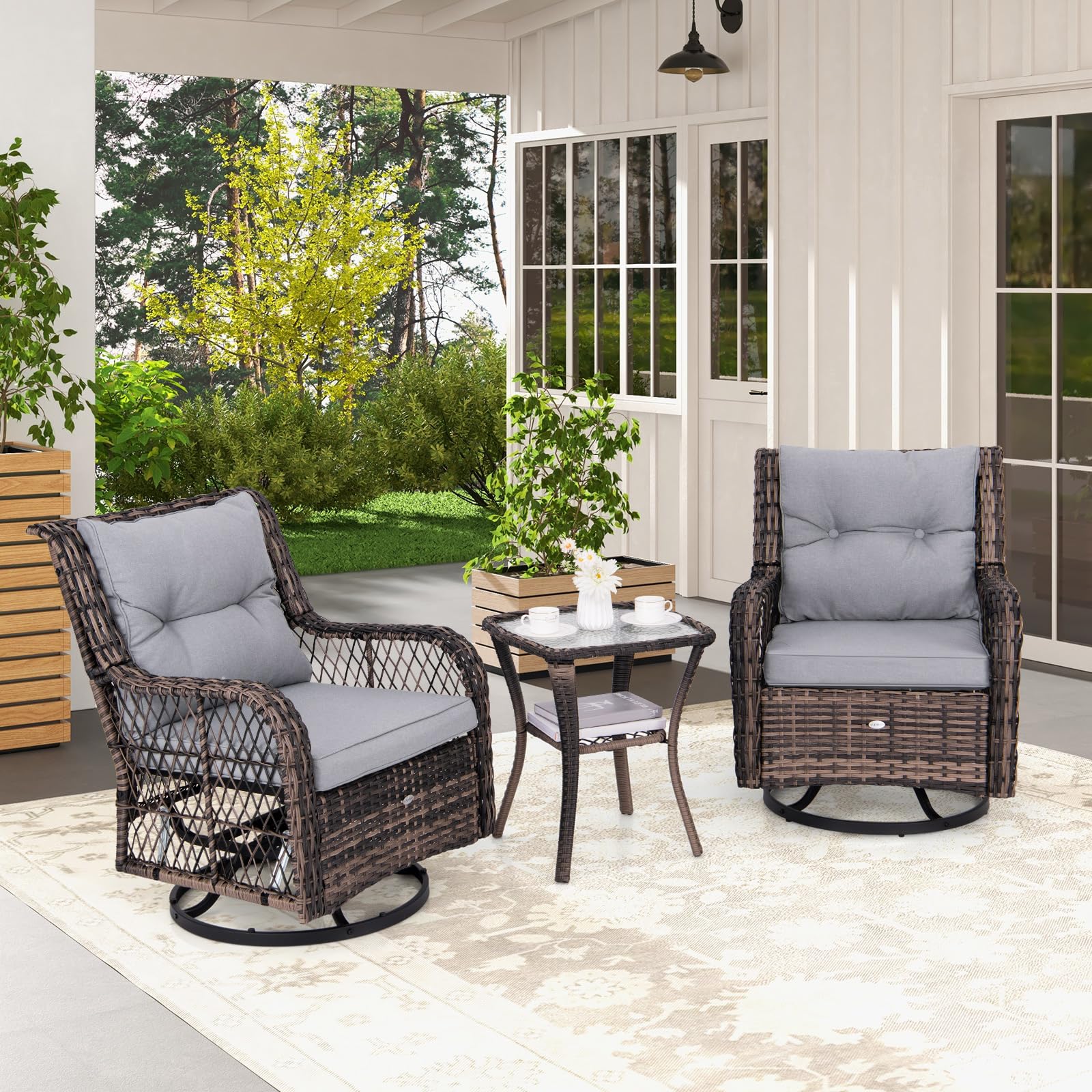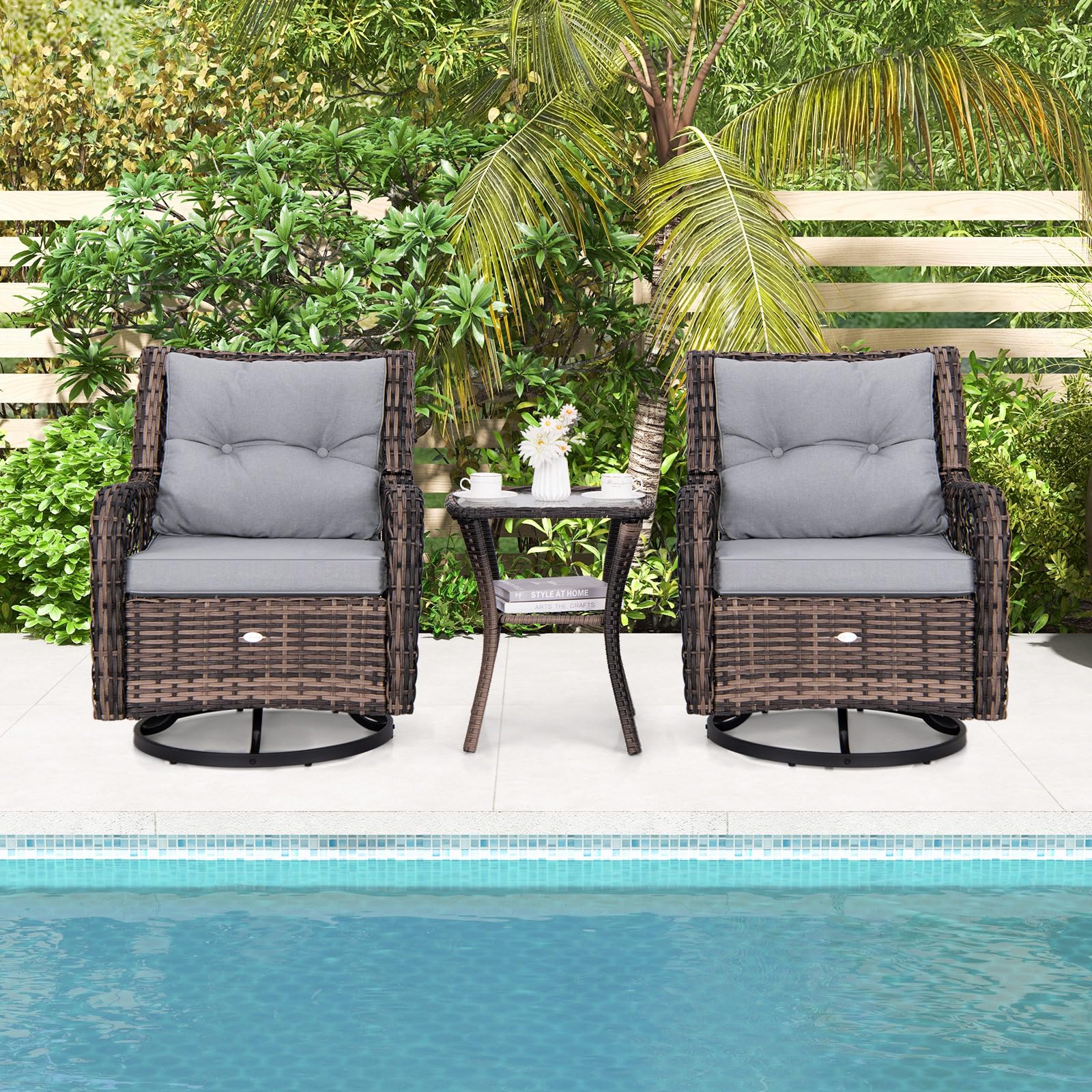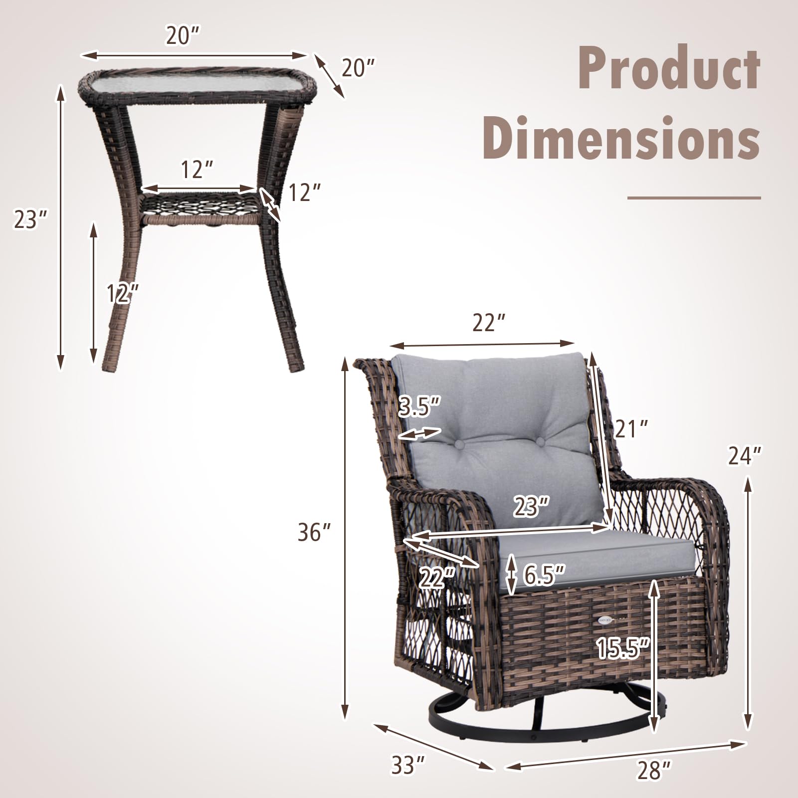 Tangkula 3 Pieces Outdoor Swivel Rocker Set, Rattan Wicker Patio Rocking Cushioned Chairs Set of 2 with Small Side Table