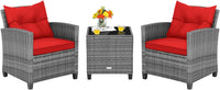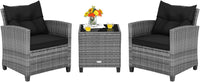 The fade-resistant and sun-protective PE wicker as well as the anti-rust and sturdy metal frame make this outdoor conversation set fit the outdoor environment. Therefore, you can place this patio sofa set wherever you want. Then, the ergonomic chairs with soft padded cushions can't wait to provide you with a comfy sitting experience for complete relaxation. And the tempered glass side table is convenient for you to put items on.