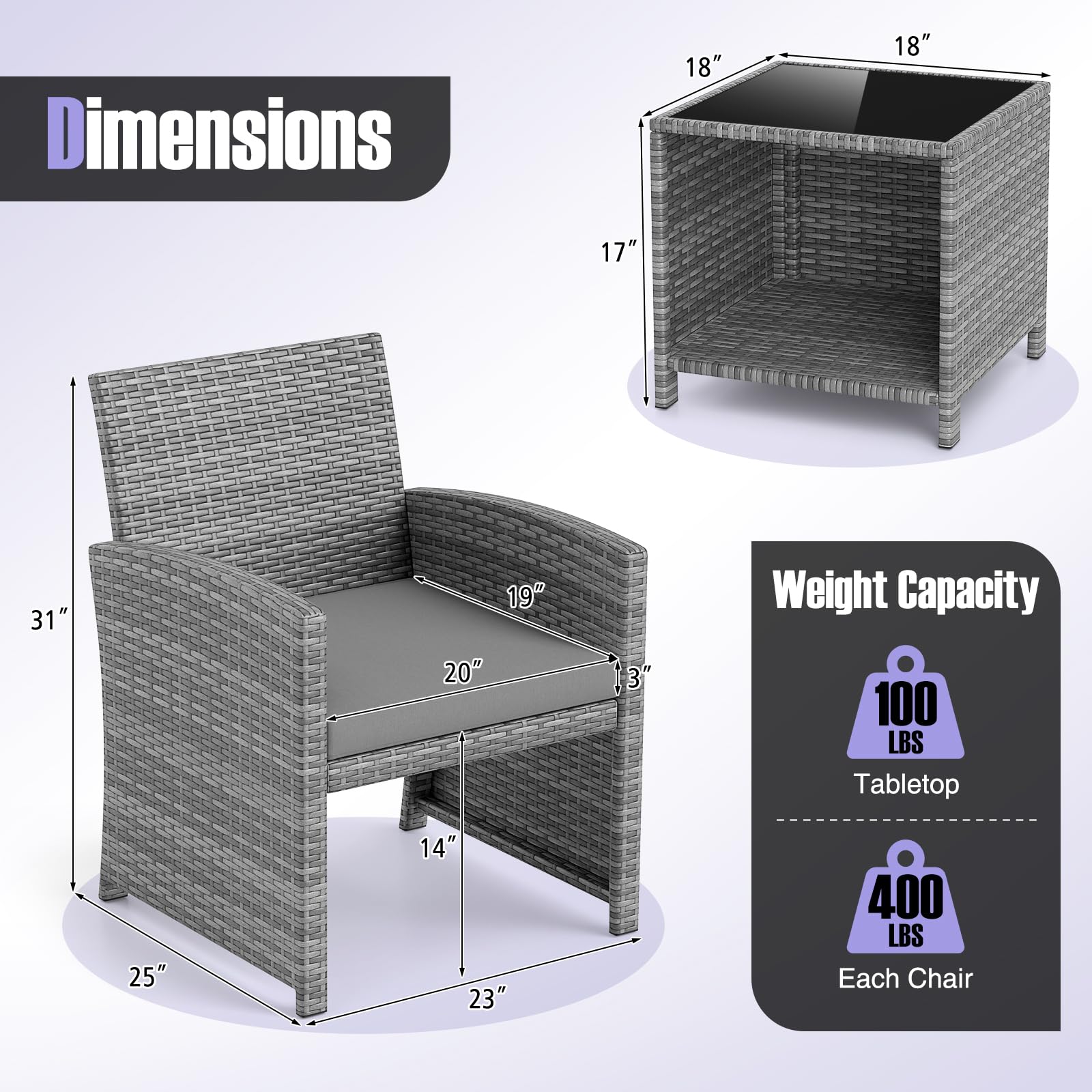 Crafted with high-quality PE rattan, this outdoor furniture set is designed to withstand the test of time. The chairs and table are built on sturdy metal frames for excellent sturdiness. Each chair is equipped with sponge-filled seat cushions for added comfort, and the cushion covers feature convenient zippers for easy removal and washing. The coffee table features a tempered glass top and additional storage space, perfect for storing your outdoor necessities. Additionally, this outdoor conversation set is ideal for various outdoor areas, such as the patio, garden, or poolside, adding a modern and elegant flair.