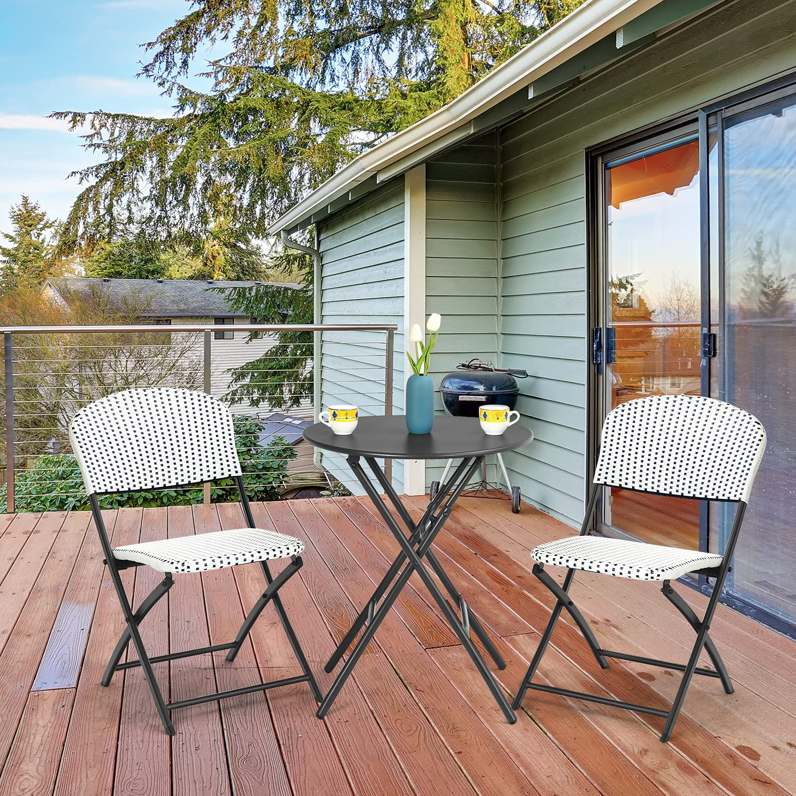 - Space-saving Design: The patio dining set is lightweight, and it is easy to store and transport in a compact size. In addition, the outdoor bistro set has no assembly needed because of its folding design, which helps to save time and energy. And the smooth surface with rounded corners ensures safety while using.