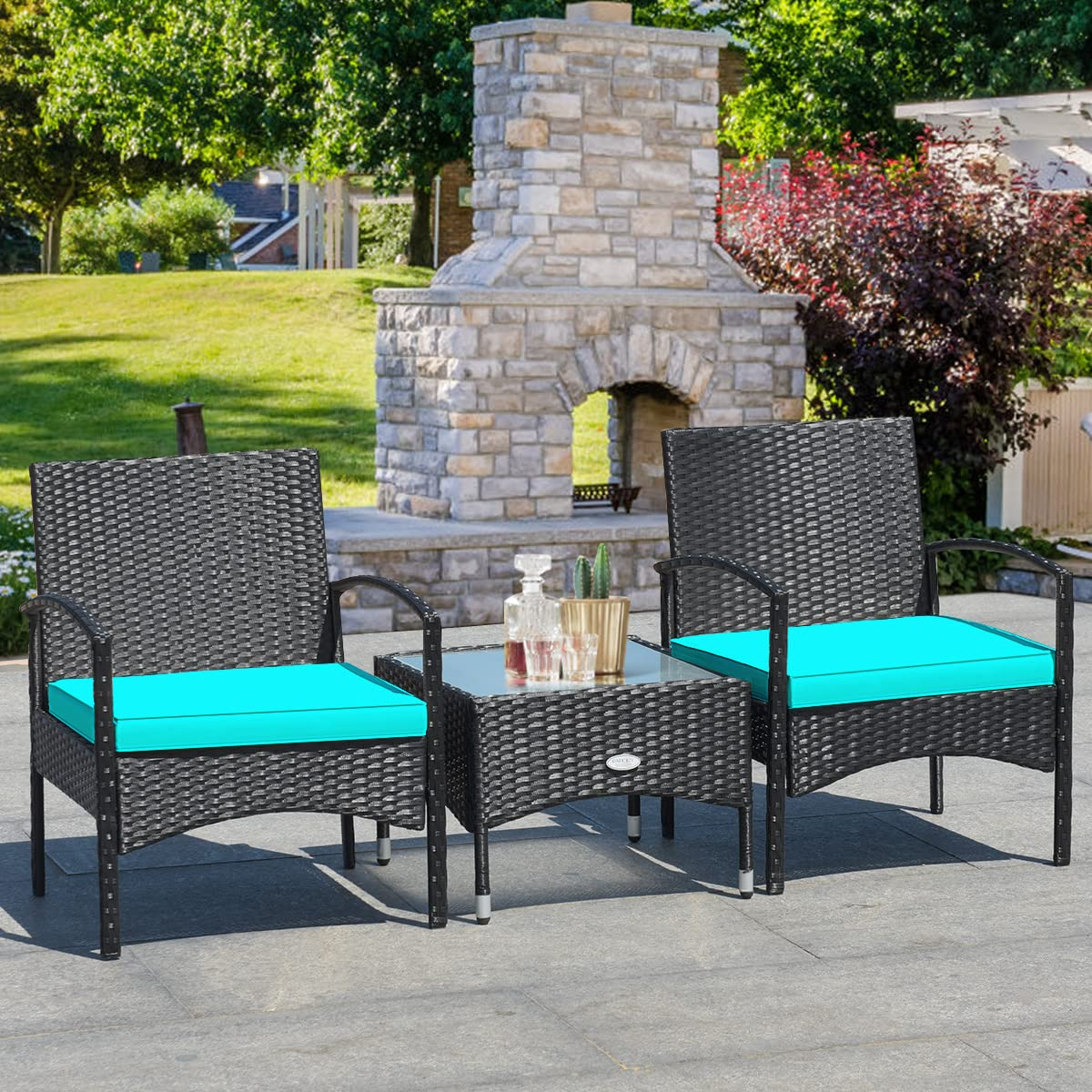 This 3-piece patio wicker set includes 1 convenient coffee table and 2 comfortable chairs, creating a perfect outdoor relaxing space for you.