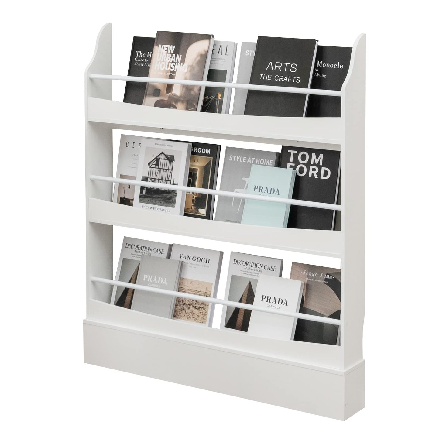 - Great Storage Addition: The 3-tier bookshelf offers plenty of space to fully meet your storage needs. It comes with 3 wide shelves and allows you to sort books, documents, newspapers, or magazines by category. Plus, each shelf comes with front guardrails and baffles to keep items from falling. So you can free the working space from clutters.