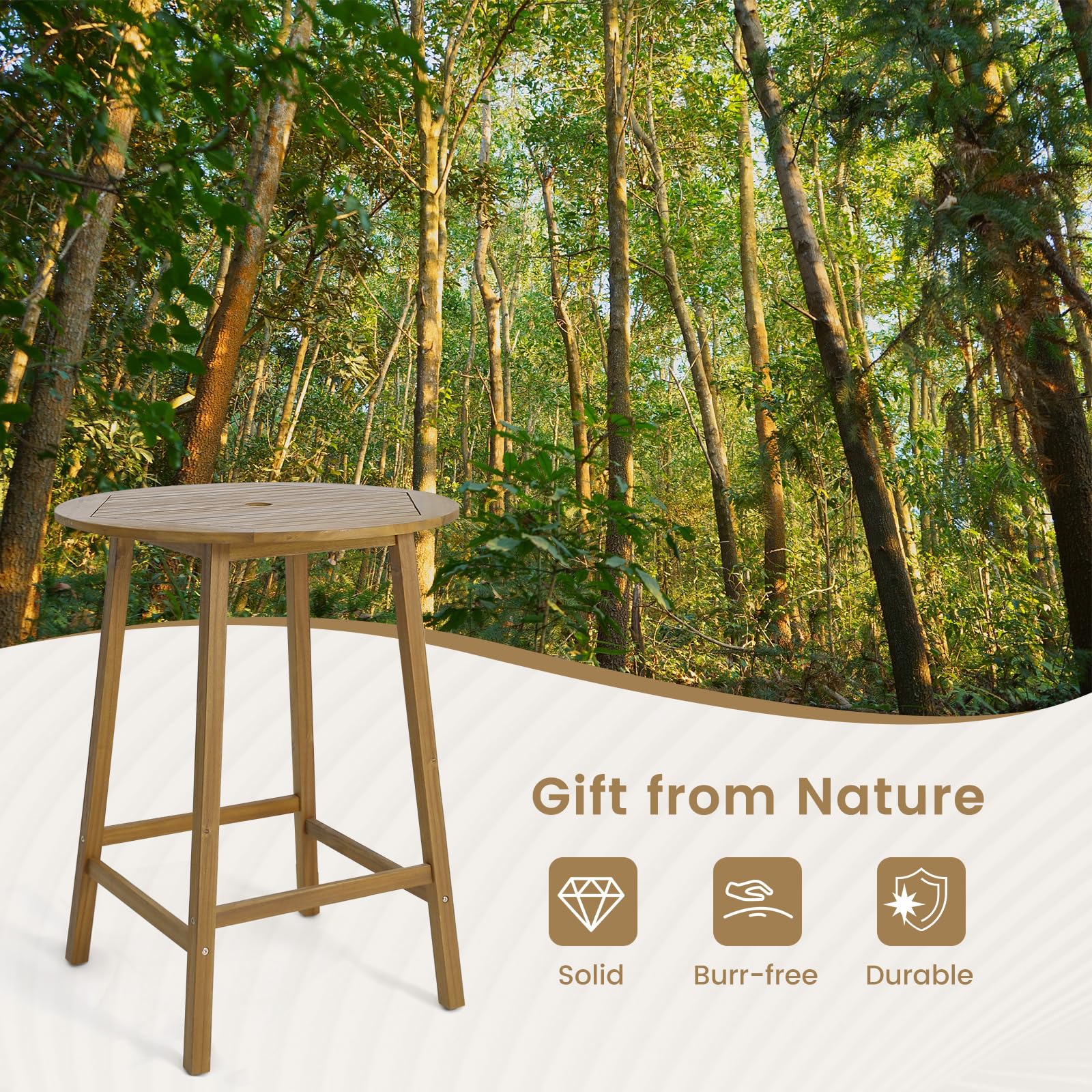 Tangkula 31.5” Acacia Wood Patio Bar Table